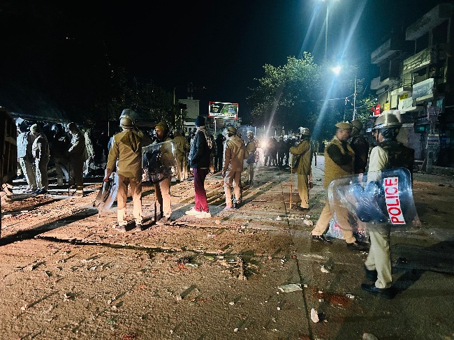 जयपुर. चौमूं (जयपुर) में सुबह मस्जिद के बाहर रेलिंग लगाने को लेकर विवाद हो गया। उपद्रवियों के पथराव में कई पुलिसवालों के सिर फूट गए। बवाल कर रही भीड़ के हटाने के लिए आंसू गैस का इस्तेमाल किया गया। विवाद चौमूं कस्बे के बस स्टैड के पास सुबह 3 बजे हुआ। इस घटना में घायल 6 पुलिसवालों को हॉस्पिटल में एडमिट कराया गया है। मौके पर चार से ज्यादा थानों के पुलिसकर्मी और आरएसी की कंपनी तैनात है। कस्बे में 24 घंटे के लिए इंटरनेट भी बंद किया गया है। अब तक 50 उपद्रवियों को पुलिस ने हिरासत में लिया है। विवाद मस्जिद के पास सड़क किनारे लगे पत्थरों को हटाने से जुड़ा है। गुरुवार शाम को समुदाय विशेष के लोगों और पुलिस प्रशासन के बीच वार्ता हुई थी, जिसमें समुदाय विशेष ने स्वयं पत्थर हटाने पर सहमति जताई थी। पत्थर हटाने के बाद समुदाय विशेष के लोगों ने प्रशासन की सहमति के बिना लोहे की रेलिंग लगाकर बाउंड्री का काम शुरू कर दिया। जब उनसे मना किया गया तो कुछ लोगों ने पत्थरबाजी शुरू कर दी। हालात बिगड़ते देख चौमूं, हरमाड़ा, विश्वकर्मा, दौलतपुरा सहित आसपास के कई पुलिस थानों से अतिरिक्त बल मौके पर भेजा गया। भीड़ को तितर-बितर करने के लिए पुलिस ने हल्का बल प्रयोग किया और आंसू गैस के गोले भी छोड़े। कोई व्यक्ति कानूनी व्यवस्था बिगाड़ने की कोशिश करता है, उपद्रव करने की कोशिश करता है या नागरिकों के लिए खतरा पैदा करने की कोशिश करता है तो उसको उसकी सजा मिलेगी। वो कार्रवाई पुलिस पूरी मजबूती के साथ कर रही है। राहुल प्रकाश ने लोगों से पुलिस का सहयोग करने की भी अपील की। इसके बाद लोगों ने पुलिस प्रशासन जिंदाबाद के नारे लगाए।