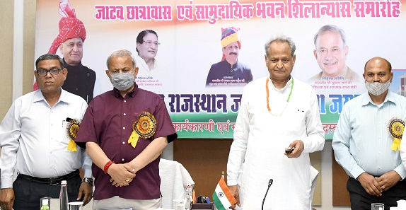 गहलोत रविवार को मुख्यमंत्री निवास से वीसी के माध्यम से अखिल राजस्थान जाटव महासभा के जयपुर में छात्रावास एवं सामुदायिक भवन के शिलान्यास समारोह को संबोधित कर रहे थे। उन्होंने कहा कि जाटव समाज को छात्रावास एवं सामुदायिक भवन निर्माण के लिए वर्ष 2013 में हमारी सरकार ने रियायती दर पर भूमि का आवंटन किया था। मुझे खुशी है कि आज हमारी सरकार के समय ही इसका शिलान्यास हो रहा है। उन्होंने छात्रावास एवं सामुदायिक भवन निर्माण के लिए मुख्यमंत्री सहायता कोष से 5 लाख रूपए देने की घोषणा की।