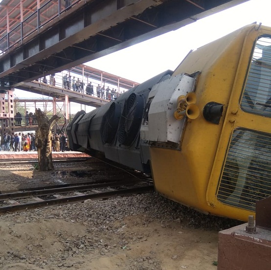 जयपुर। जयपुर में शुक्रवार को बड़ा रेल हादसा होते होते टल गया। सांगानेर रेलवे स्टेशन पर दयोदय सुपर फास्ट टÓेन का इंजन और एक डिबबा पटरी से उतर गया और एकाध डिब्बे आधे-पड़ते घूम गए। इससे यात्रियों में खलबली मच गई, हालांकि बड़ी जन-धन हानि नहीं हुई है। एकाध रेल यात्री को मामूली चोट आई है। यह हादसा करीब साढ़े बारह बजे सांगानेर रेलवे स्टेशन पर हुआ। रेलवे स्टेशन पर रेलवे का काम चल रहा है।