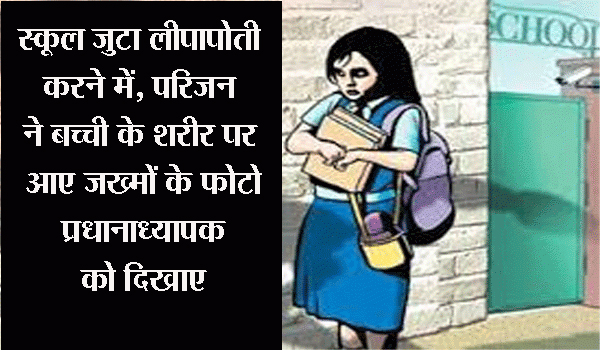 बताया जाता है कि वह सुबह करीब 7:45 बजे स्कूल के शौचालय में गई थी। तभी वहां पीछे से किसी ने उसका मुंह बंद कर दिया और उसे बांहों में जकड़ते हुए छेड़छाड़ करने लगा। उसने बच्ची के संवेदनशील अंगों पर चिकोटी काटी। छात्रा कहती रही कि अंकल छोड़ दीजिए, लेकिन वह उससे ज्यादति करता रहा। उसने बच्ची को शरीर पर कई जगह बुरी नोंचा, इससे वह जख्मी हो गई। इसके बाद आरोपी ने उसे धमकाया कि किसी को बताने पर जान से मार दूंगा। इससे बच्ची इतना डर गई कि वह पेपर भी नहीं दे पाई। आरोप है कि स्कूल प्रबंधन ने मामले को गंभीरता से नहीं लिया। उन्होंने बच्ची के परिजनों को फोन कर स्कूल बुलाया और कहा कि छात्रा की तबीयत खराब है। परिजन उसे घर ले आए। वह घर पर रोती रही और खाना भी नहीं खाया। परिजनों के मुताबिक, शाम करीब साढ़े पांच बजे बच्ची की मां व मौसी ने उससे बात की तो उसने घटना के बारे में बताते हुए कहा कि वह अब स्कूल नहीं जाएगी। इस पर परिजनों ने छात्रा के जख्म के निशान वाले फोटो प्रिंसिपल को वाट्सअप पर भेजे और नाराजगी जताई। परिजनों का आरोप है कि प्रिंसिपल अमिता कोचर ने घटना को झुठलाने का प्रयास किया। परिजन प्रिसिंपल के घर पहुंचे और इसके बाद बच्ची के परिजन महिला थाने में पहुंचे और शिकायत दी।