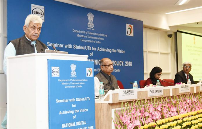 नई दिल्ली। संचार राज्य मंत्री (स्वतंत्र प्रभार) मनोज सिन्हा ने कहा, ‘‘राष्ट्रीय डिजिटल संचार नीति (एनडीसीपी) 2018 सुदृढ़ प्रतिस्पर्धी और टिकाऊ डिजिटल संचार क्षेत्र को विकसित और प्रोत्साहित कर प्रधानमंत्री नरेन्द्र मोदी के नेतृत्व वाली हमारी सरकार के डिजिटल इंडिया स्वप्न को साकार करने की दिशा में उत्प्रेरक का कार्य करेगी।’’ सिन्हा ने आज नई दिल्ली में दूरसंचार विभाग द्वारा राज्यों और संघशासित प्रदेशों के प्रतिनिधित्व से आयोजित संगोष्ठी के उद्घाटन के अवसर पर संवाददाताओं से यह बात कही। इस संगोष्ठी का आयोजन राष्ट्रीय डिजिटल संचार नीति (एनडीसीपी) 2018 के विजन, मिशन और उद्देश्यों के लिए सहयोगपूर्ण प्रयास और उन्हें प्राप्त करने का आधार तैयार करने के लिए किया गया।