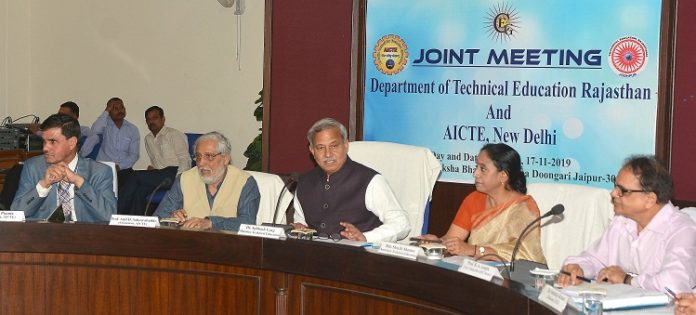 बैठक में एआईसीटीई के अध्यक्ष श्री अनिल डी. सहस्त्रबुद्धे ने कहा कि तकनीकी शिक्षा संस्थानों के विभागाध्यक्षों को एआईसीटीई के द्वारा की जा रही योजनाओं का प्रचार प्रसार करना चाहिए जिससे युवा एवं अध्यापक उन योजनाओं का फायदा लेकर अपना कौशल विकास कर सकें। उन्होंने कहा कि राजस्थान में अटल एकेडमी बनाई जाएगी जिसमें विद्यार्थियों तथा शिक्षकों को प्रशिक्षण देने के साथ विभागाध्यक्षों का भी प्रशिक्षण होगा। उन्होंने कहा कि तकनीकी शिक्षा की योजनाओं का लाभ अनुसूचित जाति, अनुसूचित जनजाति तथा महिलाओं सहित सभी को समावेशी रूप से मिलना चाहिए।