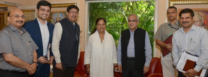 जयपुर। मुख्यमंत्री वसुंधरा राजे से नीति आयोग के उपाध्यक्ष डॉ. राजीव कुमार के नेतृत्व में आयोग के एक प्रतिनिधिमंडल ने मुलाकात की। मुख्यमंत्री निवास पर हुई बैठक में राजे ने आयोग के अधिकारियों के साथ राजस्थान में पेयजल की उपलब्धता और गर्मी के मौसम में अकाल की स्थिति सहित अन्य विषयों पर चर्चा की। इस पर डॉ. कुमार ने केन्द्र सरकार की ओर से राजस्थान को यथासंभव सहायता दिलवाने का आश्वासन दिया। मुख्यमंत्री से कोपेनहेगन कंसेंसस के अध्यक्ष डॉ. लोम्बॉर्ग, उपाध्यक्ष रोनाल्ड, वरिष्ठ सलाहकार डॉ. मनोरमा बख्शी तथा टाटा ट्रस्ट की पॉलिसी हैड पूजा पार्वती ने भी मुलाकात की।