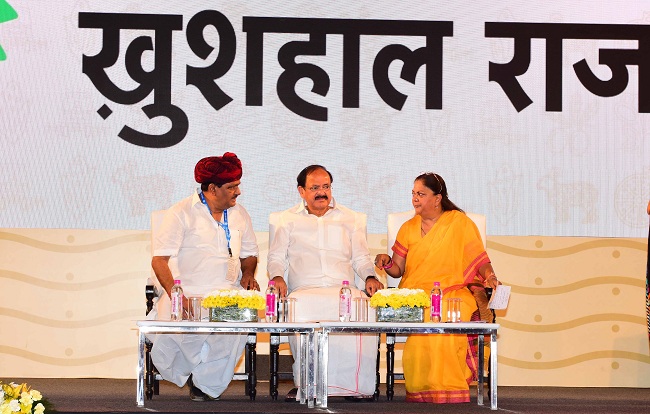 जयपुर/कोटा। केन्द्रीय शहरी विकास तथा सूचना एवं प्रसारण मंत्री वेंकैया नायडू ने कहा कि किसानों की आय को वर्ष 2022 तक दोगुना करने के उद्देश्य से केन्द्र एवं राज्य सरकार मिलकर कृषि के क्षेत्र में ’फोर आई’ यानि इरिगेशन, इन्फ्रास्ट्रक्चर, कम इंटेªस्ट रेट पर कृषि ऋण एवं इंश्योरेंस पर फोकस कर रही हैं। उन्होंने कहा कि प्रधानमंत्री नरेन्द्र मोदी के नेतृत्व में देश में एवं मुख्यमंत्री वसुन्धरा राजे के नेतृत्व में प्रदेश में कृषि के क्षेत्र में एवरग्रीन रिवोल्यूशन की शुरूआत हो चुकी है। कोटा में ग्लोबल राजस्थान एग्रीटेक मीट (ग्राम-2017) का आयोजन इस दिशा में राज्य सरकार का एक महत्वपूर्ण कदम है। नायडू एवं मुख्यमंत्री वसुन्धरा राजे ने बुधवार को कोटा स्थित आरएसी ग्राउण्ड में ग्राम-2017 का शुभारंभ किया। इस अवसर पर श्री नायडू ने कहा कि देष हर क्षेत्र में तेजी से आगे बढ़ रहा है लेकिन कृषि के क्षेत्र में अभी बहुत काम किया जाना बाकी है। पुरानी सरकारों के ध्यान नहीं देने के कारण देश में यह धारणा बन चुकी है कि कृषि लाभ का व्यवसाय नहीं है, हमें इस धारणा को तोड़ना होगा। उन्होंने राज्य में फसलों में विविधता लाने और कृषि उत्पादों के वैल्यू एडीषन, प्रसंस्करण, ग्रेडिंग आदि के जरिए कृषि को और लाभदायक बनाने पर जोर देते हुए कहा कि किसानों के लिए नवीनतम तकनीकी ज्ञान, विविधतापूर्ण कृषि, उन्नत एवं सुलभ बाजारों के विकास, खाद्य प्रसंस्करण और आधारभूत संरचनाओं को बढावा देने जैसे उपाय करने होंगे।