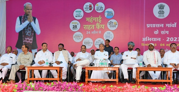 जयपुर। मुख्यमंत्री अशोक गहलोत ने कहा कि आमजन को महंगाई राहत कैंपों द्वारा महंगाई से राहत प्रदान की जा रही है। सभी पात्र लोगों को कैंपों में आकर अपने हक का लाभ लेना चाहिए। गहलोत गुरुवार को चित्तौड़गढ़ की सेमलपुरा ग्राम पंचायत में आयोजित महंगाई राहत कैंप एवं प्रशासन गांवों के संग अभियान शिविर के अवलोकन पश्चात वहां उपस्थित जनसमूह को सम्बोधित कर रहे थे। गहलोत ने कहा कि राज्य सरकार महंगाई से परेशान आमजन को जनकल्याणकारी योजनाओं से जोड़कर अधिकतम राहत देने के लिए प्रतिबद्ध है। इस दौरान मुख्यमंत्री ने महंगाई राहत कैंप में लाभार्थियों से मिलकर उन्हें मुख्यमंत्री गारंटी कार्ड वितरित किए। उन्होंने लाभार्थियों को राज्य सरकार द्वारा जनहित में संचालित योजनाओं के लाभों के बारे में अवगत कराया। मुख्यमंत्री ने कहा कि राज्य सरकार की योजनाओं से हर वर्ग के लोग लाभान्वित हो रहे हैं। आमजन के हित में संचालित जनकल्याणकारी योजनाओं के संचालन में संसाधनों की कोई कमी नहीं आने दी जाएगी। गहलोत ने वर्चुअल माध्यम से अमरा जी भगत अनगढ़ बावजी पैनोरमा भदेसर, मां पन्नाधाय पैनोरमा माताजी की पांडोली, 132 केवी जीएसएस घटियावली, 33/11 केवी जीएसएस ओछड़ी, प्राथमिक स्वास्थ्य केंद्र उदयपुर, राजकीय कृषि महाविद्यालय बस्सी के नवीन भवन कार्य तथा भीमेश्वर सांवरिया जी पर्यटन विकास कार्य का शिलान्यास किया। उन्होंने सॉखेड़ा बांध, एएनएम नर्सिंग हॉस्टल के नवीन भवन, कार्यालय समादेष्टा गृह रक्षा प्रशिक्षण केंद्र चित्तौड़गढ़ तथा पशु चिकित्सालय विजयपुरा का लोकार्पण किया। मुख्यमंत्री ने उप जिला चिकित्सालय बस्सी, राजकीय महाविद्यालय घोसुंडा तथा राजकीय विधि सहशिक्षा महाविद्यालय का शुभारंभ भी किया।