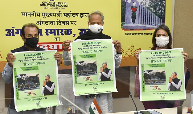 जयपुर। मुख्यमंत्री अशोक गहलोत ने कहा कि अंगदान एक पुनीत कार्य है। एक व्यक्ति के अंगदान से कई लोगों के जीवन को बचाया जा सकता है। उन्होंने कहा कि अंगदान को लेकर समाज में भ्रांतियों को दूर कर इसे जन आंदोलन का रूप देने की आवश्यकता है और हर व्यक्ति को अंगदान का संकल्प लेना चाहिए। गहलोत शुक्रवार को मुख्यमंत्री निवास से वीडियो कॉन्फ्रंंेस के माध्यम से अंगदान दिवस के अवसर मोहन फाउण्डेशन जयपुर सिटीजन फोरम (एमएफजेसीएफ) के तत्वावधान में जयपुर में बनाए गए अंगदाता स्मारक के उद्घाटन समारोह को संबोधित कर रहे थे।