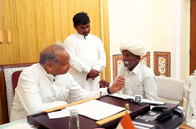 जयपुर. बीजेपी के पोस्टर में जिस किसान की जमीन कर्ज से नीलाम होने का दावा किया गया उसने खुद पर एक रुपया भी कर्ज नहीं होने की बात कहकर मामले को नया मोड़ दे दिया। किसान के सामने आने के बाद अब कांग्रेस बीजेपी को घेर रही है। जैसलमेर के रामदेवरा में रिखियों की ढाणी के रहने वाले किसान माधुराम जयपाल और उनके बेटे भूराराम से सीएम अशोक गहलोत ने शनिवार को जयपुर में मुलाकात की। सीएम ने पोस्टर हटवाने का आवश्वासन दिया। सीएम निवास पर मुलाकात का गहलोत ने पूरा वीडियो जारी किया है। किसान ने सीएम को पूरी बात बताई। कहा उसे बेवजह बदनाम कर दिया गया। उस पर एक रुपया भी कर्ज नहीं है। इतना बदनाम हो गए कि रात को जिस ढाबे पर चाय पीने रुके उसने पहले पैसे लिए। हलोत ने किसान के बेटे से पूछा इनको मालूम कैसे पड़ा कि आपका फोटो आया है। किसान के बेटे ने कहा वॉट्सऐप पर फोटो आया था। तब जानकारी हुई कि हमारी जमीन नीलाम दिखाई जा रही है। सीएम ने कहा अच्छा आप लोग वॉट्सऐप देखते हो। वहां आपने देखा कि फोटो आई आपके पापा की। किसान के बेटे ने कहा हां, मैंने वॉट्सऐप पर देखा। सीएम ने कहा आप बाबा को यहां लेकर आए, अच्छा किया। सीएम से बातचीत में किसान के बेटे ने कहा नाम बदनाम हो गया। सब लोग बोलते हैं कि तुम्हारी जमीन गई, नीलाम हो गई। किसान ने कहा गांव-गांव में फोटो लगा दी। किसान के बेटे ने कहा रात को हम चाय पीने रुके थे। होटल वाले ने पोस्टर देख रखा था। उन्होंने पहले पैसे ले लिए। गहलोत ने इस पर कहा- मतलब, विश्वास खत्म हो गया। किसान के बेटे ने कहा-बिल्कुल विश्वास खत्म हो गया। गांव में तो फुल विश्वास खत्म हो गया। लोग गांव में कहते हैं तुम तो कर्ज में डूबे हुए हो। सीएम ने किसान से मारवाड़ी में कहा- बाबा थे चिंता मत करो। आपके जितने भी पोस्टर लगे हैं। सब हटवा देंगे। अब ठीक है ना, चिंता मत करो। पोस्टर बीजेपी ने लगवाए थे। बीजेपी पूरी तरह एक्सपोज हो गई है। आप चिंता मत करो। बीजेपी की बदनामी होगी। किसान ने सीएम से कहा मैंने बीजेपी के सामने हाथ जोड़ लिए। इस पर सीएम ने कहा मालूम है। सुनो बीजेपी ने बेईमानी की है तो वो भुगतेगी। आप क्यों चिंता करते हो? सीएम ने मारवाड़ी में कहा- अगर बीजेपी ने बेईमानी की है तो बा भुगत ही, थे क्यूं चिंता करो। किसान के बेटे ने कहा- सरासर बेईमानी की है। पूछ कर लगाया होता। सीएम ने कहा- पूछ कर लगाना चाहिए। किसान ने कहा- मेरे पर एक रुपए का कर्ज नहीं है। सीएम ने किसान से पूछा कि क्या आपको पेंशन मिलती है? जवाब में किसान ने कहा आपकी जो योजना है। वह सब मिलती है। एक हजार रुपए मुझे और एक हजार रुपए मेरी पत्नी को पेंशन मिलती है। इस पर सीएम ने किसान के बेटे से कहा- एक हजार मां को और एक हजार इनको मतलब दोनों को हर महीने 2000 रुपए मिलते हैं। 100 यूनिट बिजली माफ हो गई, 