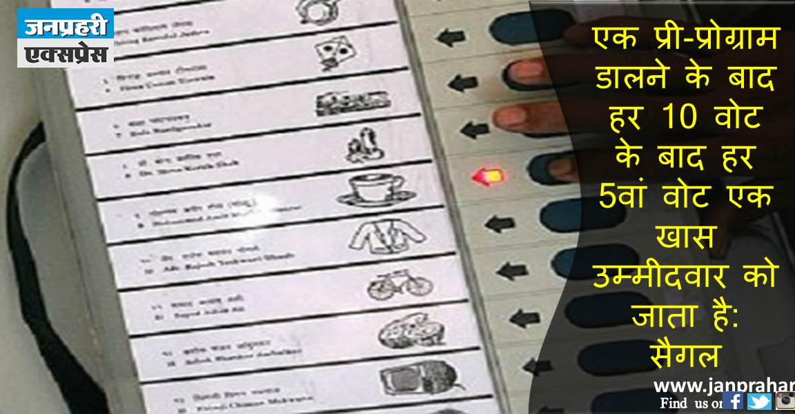 उन्होंने कहा कि कुछ प्रतिष्ठित लोगों की उपस्थिति में मॉक चुनाव आयोजित किया गया था, जहां यह पुष्टि हुई थी की ईवीएम में एक प्री-प्रोग्राम्ड कोड नंबर डालने के बाद पहले 10 वोट के बाद हर पांचवां वोट किसी खास उम्मीदवार को ही जा रहा था। उन्होंने अपनी किताब ‘आईएएस-टेल टोल्ड बाई एन आईएएस (हर आनंद पब्लिकेशन)’ में लिखा है, इस कोड को किसी भी वक्त डाला जा सकता है, यहां तक कि मतदान शुरू होने के बाद भी। सैगल ने कहा कि उन्हें साल 2009 में हुए आम चुनाव में ईवीएम की निष्पक्षता पर शक है, जिसमें अप्रत्याशित परिणाम में कांग्रेसनीत संप्रग (संयुक्त प्रगतिशील गठबंधन) सत्ता में आया था।