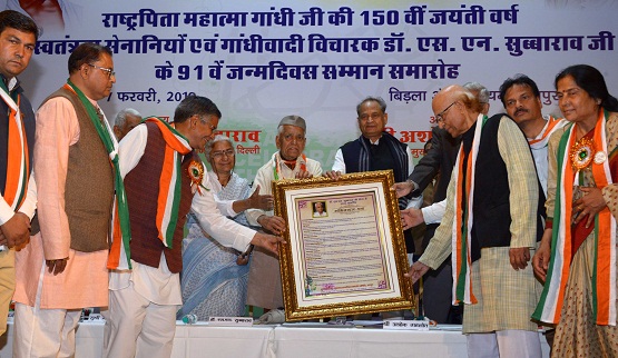 गांधीवादी डॉ. सुब्बाराव के 91वें जन्मदिवस पर सम्मान समारोह में मुख्यमंत्री ने की महत्वपूर्ण घोषणाएं