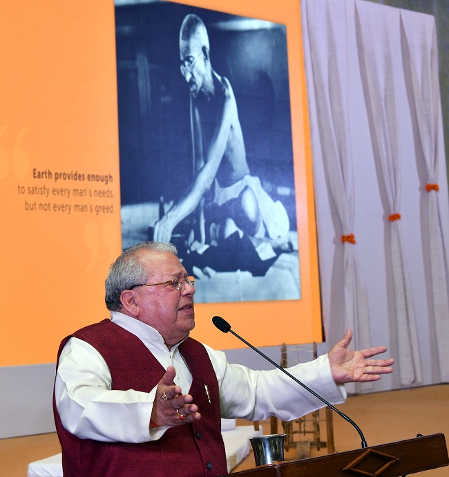 राज्यपाल ने कहा कि गांधी जी में भारतीयता के प्रति दृढ़ भावना थी। उनका दर्शन वसुधैव कुटुम्बकम था। उन्होंने कहा कि महात्मा गांधी साहसी और वीर पुरूष थे। गांधी जी का आभूषण अंहिसा था। श्री मिश्र ने कहा कि सिद्वांत विहिन राजनीति, नैतिकता विहिन कार्य, चरित्र विहिन जीवन और मानवता विहिन विज्ञान पाप होते है। राज्यपाल ने कहा कि बाबू ब्रजपाल दास की सामाजिक, पारिवारिक और सांस्कृतिक क्षेत्र में महती भूमिका थी। वे प्रेरणा के केन्द्र बिंदु है।