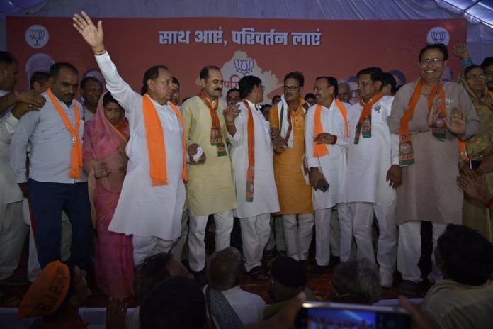 इस मौके पर पंडित जवाहर लाल नेहरू स्टेडियम में जनसभा का आयोजित हुई । इस जनसभा को संबोधित करते हुए पूर्व केंद्रीय मंत्री और भाजपा नेता सुभाष महरिया ने कहा कि भाजपा की परिवर्तन यात्रा यहां पहुंची है और जनता ने कांग्रेस सरकार के कुशासन, अत्याचार और भ्रष्टाचार का बदला लेने का संकल्प लिया है ।