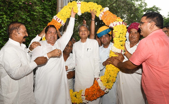 आभार व्यक्त करने आए दूदू-फागी क्षेत्र के जनप्रतिनिधियों ने माला पहनाकर मुख्यमंत्री का अभिनंदन किया। इस दौरान लोगों ने ‘गहलोत नहीं ये आंधी है, राजस्थान का गांधी है‘ जैसे नारे लगाकर मुख्यमंत्री के प्रति आभार प्रदर्शित किया।