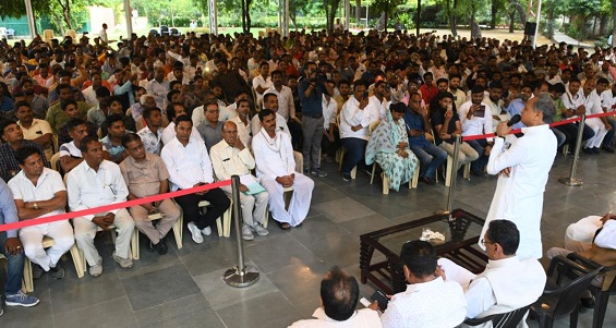 जयपुर। मुख्यमंत्री अशोक गहलोत ने कहा कि राज्य सरकार जनता के सुख-दुख में हमेशा साथ खड़ी है। हमारे कार्यक्रम और नीतियां हर वर्ग के कल्याण को समर्पित रहेंगे। उन्होंने कहा कि प्रदेश की राजकीय सेवाओं एवं शिक्षण संस्थाओं में आर्थिक रूप से कमजोर वर्ग (ईडब्ल्यूएस) के आरक्षण में अचल सम्पत्ति संबंधी प्रावधान हटाने का निर्णय युवाओं के हित में एक बड़ा कदम है। गहलोत बुधवार शाम मुख्यमंत्री निवास पर ईडब्ल्यूएस आरक्षण में अचल सम्पत्ति संबंधी प्रावधान हटाने पर कोटा से बड़ी संख्या में आभार व्यक्त करने आए विभिन्न संगठनों, संस्थाओं एवं समाजों के लोगों को संबोधित कर रहे थे। राज्य सरकार की इस ऎतिहासिक पहल के लिए लोगों ने मुख्यमंत्री का माला और साफा पहनाकर स्वागत किया।