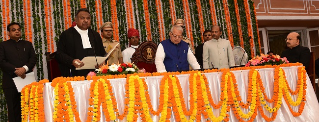 जयपुर। राज्यपाल कलराज मिश्र ने राजभवन में राजस्थान उच्च न्यायालय के लिए मनोनीत मुख्य न्यायाधीश न्यायमूर्ति इन्द्रजीत माहान्ती को मुख्य न्यायाधीश पद की शपथ दिलाई। न्यायमूर्ति माहान्ती ने अंग्रेजी भाषा में शपथ ली। न्यायमूर्ति माहान्ती राजस्थान उच्च न्यायालय के 37 वें मुख्य न्यायाधीश हैं।