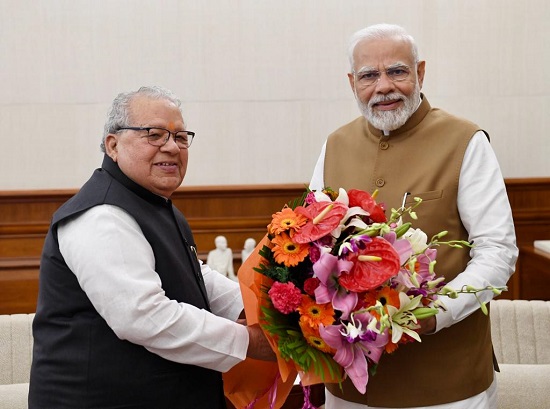 जयपुर। राज्यपाल कलराज मिश्र ने शुक्रवार को नई दिल्ली में प्रधानमंत्री नरेंद्र मोदी से मुलाकात की। मुलाकात के दौरान उन्होंने प्रधानमंत्री मोदी को राजभवन में बन रहे संविधान पार्क में भारतीय संविधान निर्माण से जुड़े इतिहास और उससे जुड़े शिल्प कार्यों के बारे में विस्तार से अवगत कराया। उन्होंने राजभवन स्थित संविधान पार्क में निर्मित हो रहे संविधान यात्रा से जुड़े शिल्प और अन्य निर्माण कार्यों के छाया-चित्रों का एलबम भी भेंट किया। प्रधानमंत्री नरेन्द्र मोदी ने राजस्थान के राजभवन में संविधान पार्क के निर्माण को ऐतिहासिक पहल बताते हुए इसकी सराहना की। राज्यपाल ने प्रधानमंत्री टीबी मुक्त भारत अभियान के अंतर्गत 2025 तक टीबी की बीमारी को मिटाने के लिए राजस्थान में किए जा रहे कार्यों की प्रगति से उन्हें अवगत कराया। मिश्र ने उन्हें बताया कि राजस्थान राजभवन में टीबी उन्मूलन प्रकोष्ठ द्वारा अभियान की सतत मॉनिटरिंग की जा रही है। अधिकाधिक निक्षय मित्र बना कर अधिकाधिक टीबी मरीजों को गोद लेने की पहल के बारे में भी उन्होंने प्रधानमंत्री को जानकारी दी। राज्यपाल मिश्र ने मुलाकात के दौरान बताया कि राजभवन स्तर पर जनजाति परिवर्तन एकक का गठन कर जनजाति क्षेत्र में विकास योजनाओं का प्रभावी क्रियान्वयन सुनिश्चित किया जा रहा है। उन्होंने प्रधानमंत्री को आदिवासी क्षेत्र के युवाओं के रोजगार एवं कौषल विकास के लिए राजभवन की पहल पर किये जा रहे कार्यों की भी जानकारी दी। मिश्र ने युवाओं में संविधान के प्रति जागरूकता के लिए विष्वविद्यालयों में संविधान पार्कों के निर्माण एवं अन्य प्रयासों के बारे में भी उन्हें जानकारी दी।