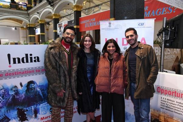 jaipur. रणवीर सिंह, सुश्री आलिया भट्ट, सुश्री जोया अख्तर और रितेश सिधवानी सहित आगामी फिल्म ‘गली बॉय’ की पूरी टीम बर्लिन अंतर्राष्ट्रीय फिल्म महोत्सव (बर्लिनेल) 2019 में भारतीय पैविलियन का दौरा किया। उन्होंने आईएफएफए 2019 की विवरणिका जारी की और भारतीय प्रतिनिधिमंडल द्वारा आईएफएफए स्वर्ण जयंती समारोह के लिए इसी साल के अंत में होने वाले कार्यक्रमों से अवगत कराया गया।
