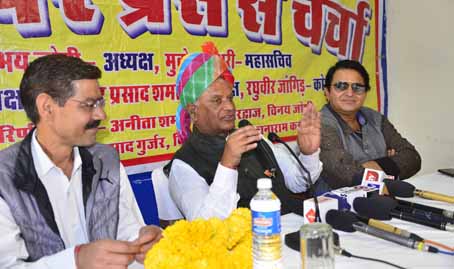 जयपुर। भारतीय जनता पार्टी के प्रदेषाध्यक्ष मदन लाल सैनी का कहना है, कि भगवान हनुमानजी आस्था का प्रतीक है। मेरे लिए हनुमानजी किसानों के देवता है, मै स्वयं किसान हूूॅ। कोई भी कुआ बनने पर हनुमानजी का स्थान बनाया जाता है। किसी तरह फसलों के अच्छें होने पर भी हनुमान जी की पूजा की जाती है। सैनी रविवार को पिंकसिटी प्रेस क्लब में आयोजित चाय पर चर्चा कार्यक्रम में अपने विचार रख रहे थे उन्होनें कहा, कि भारतीय जनता पार्टी पूर्ण बहुमत के साथ राजस्थान में सरकार बनाने जा रही है। जहां तक कांग्रेस का सवाल है। उनको तो उनका मुख्यमंत्री ही नही मिल रहा है। राजस्थान में भाजपा सरकार ने किसानों, युवाओं, वद्धजन, महिलाओं एवं बच्चों के कल्याण के ऐतिहासिक योजनाएं लागु की। जिसके कारण आज जनता वापस भाजपा की सरकार बनाना चाहती है। सैनी ने कहा कि पत्रकारों की जो भी मांगे थी उन्हें भाजपा ने अपने घोषणा पत्र में शामिल किया है। और सरकार बनने के बाद पत्रकारों की आवास, पेंषन एवं मेडिक्लेम सहित सभी समस्याओं का तुरन्त निस्तारण किया जाएगा।