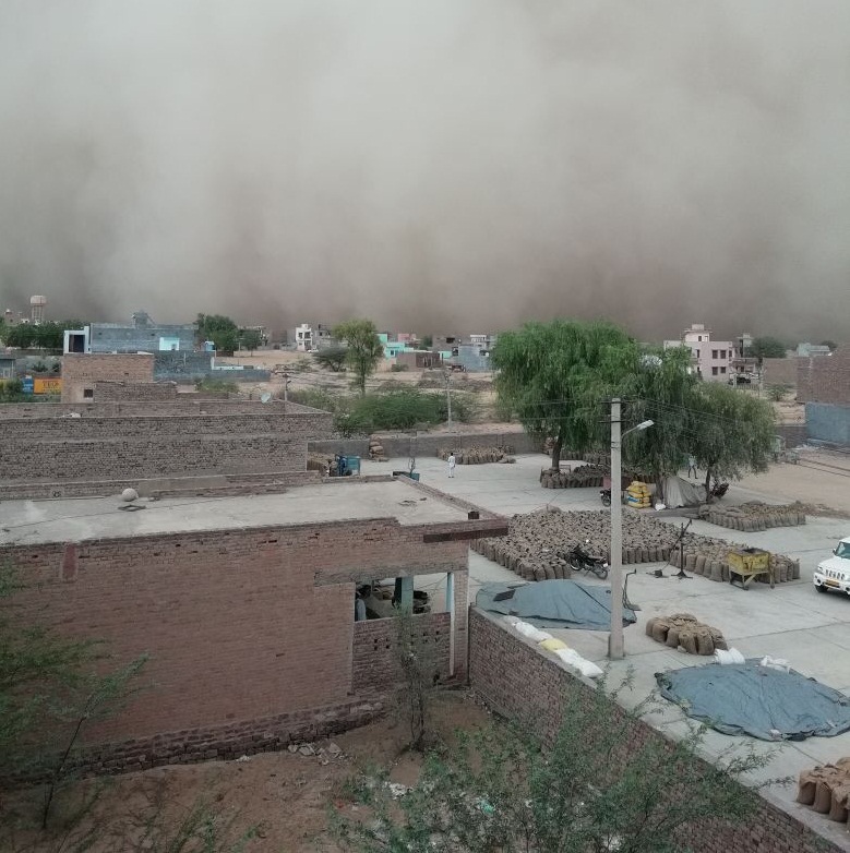 ही पेड़ व दीवारों की ओट में रहे। तेज अंधड़ से पेड़ व दीवार गिर सकती है। कलक्टर ने अंधड़ को देखते हुए स्कूलों की दस बजे बाद छुट्टी करने के निर्देश दिए हैं। तेज तूफान को देखते हुए प्रशासन ने चाक-चौबंद व्यवस्था कर रखी है। लोगों को बाहर नहीं निकलने और सुरक्षित स्थानों पर रहने को कहा गया है। उधर, सोमवार शाम से ही जयपुर समेत कई जिलों में तेज धूलभरी हवाओं से जनजीवन प्रभावित है। आज सुबह से ही तेज धूल भरी हवाएं चल रही है। जयपुर में सुबह तेज हवाओं के साथ बारिश् भी आई। अंधड़ को देखते हुए स्कूलों में बच्चों की उपस्थिति कम ही रही। बीकानेर, जैसलमेर, बाड़मेर, धौलपुर, भरतपुर आदि जिलों में बच्चों को स्कूल में भेजने से बचा जा रहा है। अंधड़ से शादी समारोह में व्यवधान पड़ रहा है। तूफान को देखते हुए यूपी, दिल्ली, मध्यप्रदेश, हरियाणा के कई राज्यों में अवकाश घोषित कर दिया है।