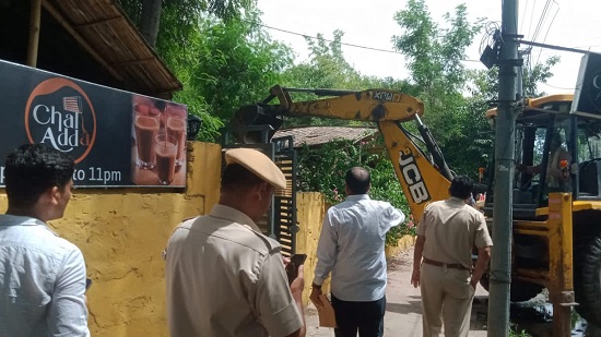जयपुर. पुलिस मुख्यालय के ऑपरेशन वज्र प्रहार के तहत आज जयपुर कमिश्नरेट पुलिस ने आदर्श नगर थाने के एचएस आनंद शांडिल्य के कैफे पर बुलडोजर चला दिया। आनंद का यह कैफे विजय पथ आदर्श नगर में चाय अड्डा के नाम से था। जिस जगह पर यह कैफे बनाया गया था वह नियमों के खिलाफ बना था जिस पर निगम और पुलिस की टीम ने मिल कर यह कार्रवाई की। आदर्श नगर थाने के सीआई सज्जन सिंह कविया ने बताया कि आनंद शांडिल्य उनके थाने का हार्ड कोर क्रिमिनल है। उसके खिलाफ दर्जनों आपराधिक मामले जयपुर कमिश्नरेट के कई थानों में दर्ज हैं। पुलिस मुख्यालय ने ऑपरेशन वज्र प्रहार के तहत ऐसे बदमाशों की सूची तैयार की है जिन पर पुलिस अब स्थानीय प्रशासन की मदद लेकर कार्रवाई कर रही है। बदमाश आनंद शांडिल्य का आदर्श नगर स्थित विजय पथ पर एक चाय अड्डा नाम से कैफे चलता है। पुलिस और निगम के इस ऑपरेशन के दौरान किसी भी प्रकार का कोई विरोध नहीं हुआ। स्थानीय लोगों ने पुलिस के इस एक्शन की सराहना की और कहा कि अगर इसी प्रकार से पुलिस अतिक्रमण करने वालों पर एक्शन लेती रहेगी तो बदमाश और बदमाशी दोनों जल्द खत्म हो जाएंगे। पुलिस का बदमाशों के प्रति इसी प्रकार का रवैया होना चाहिए। जिससे अन्य बदमाश भी समझ सके की इस तरह के काम करने वालों के खिलाफ कभी-भी एक्शन हो सकता है।
