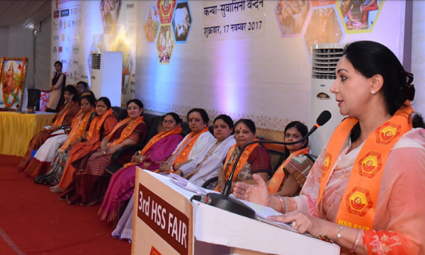 जयपुर ।अम्बेडकर सर्किल स्थित एसएमएस इन्वेस्टमेंट ग्राउंड में चल रहे एचएसएस फेयर में शुक्रवार को कन्या वन्दन कार्यक्रम हुआ जिसमें 2100 बालकों ने 2100 कन्याओं का वंदन पूजन किया तथा नत मस्तक होकर एचएसएसएफ के छ: थीम को पोषित करने की शपथ ली । इस अवसर पर जयपुर राज घराने से दिया कुमारी ने कहा कि इस प्रकार के आयोजनों से हमारी नई पीढ़ी में अच्छे संस्कारों का निर्माण होता है जो अच्छे नागरिक बनाने में सहायक सिद्ध होता है । इस अवसर पर साध्वी समदर्शी संस्थापिका श्री शक्ति पीठ जामडोली ने कहा कि भारतीय संस्कृति पोषण करने के लिए ऌरर फेयर का कार्य सराहनीय है और इस महा अभियान में समाज को भी साथ जुड़कर संस्कृति संरक्षण का कार्य समाज के सहयोग से करना चाहिए , साध्वी सु ह्रदया जी, सुशीला ,सोनिला, महामंडलेश्व किन्नर अखाडा के धर्म गुरु पुष्पा मायी, डॉ रचना दास, डॉ वसुधा सक्सेना ,डॉ पूजा अग्रवाल, समाज सेवी विमल सुराणा, मधु शर्मा ने मंच साझा किया सचिव सोमकांत शर्मा ने सभी बच्चों को शपथ दिलाते हुए भारतीय संस्कृति से जुड़कर जीवन जीने की सीख दी इस अवसर पर राजेन्द्र सिंह शेखावत दिनेश पितलिया सहित सभी पदाधिकारियों ने सामूहिक रूप से मंच पर कन्या वंदन किया। कन्या वंदन कार्यक्रम के प्रभारी कोमल चौहान ने बताया कि कन्या इस कार्यक्रम में लगभग 5000 बच्चों ने हिस्सा लिया जो सीधे हमारी सनातन संस्कृति से जुड़कर उत्साही थे । कार्यक्रम का मंच सञ्चालन निशा पारीक ने किया।