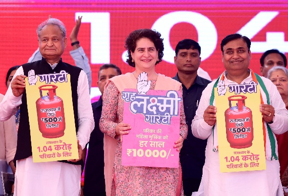 झुंझुनू। कांग्रेस की राष्ट्रीय महासचिव प्रियंका गांधी ने केंद्र की भाजपा सरकार पर हमला बोलते हुए कहा कि इस सरकार के पास कोई विजन नहीं है। केंद्र सरकार ने सब कुछ अपने उद्योगपति मित्रों को दे दिया। केंद्र सरकार किसानों के लिए काला कानून लाई और उसे वापस लिया। किसान सर्दी में धरने पर बैठे रहे, लेकिन उनसे बात नहीं की। उन्होंने कहा कि धर्म की राजनीति करने वाले समझ गए हैं कि काम करने की जरूरत नहीं है। धर्म-जाति का नाम लो और वोट बटोर लो। इस सिलसिले को हटाना होगा। प्रियंका गांधी राजस्थान के झुंझुनू जिले के अरड़ावता गांव में पूर्व केन्द्रीय मंत्री शीशराम ओला की मूर्ति अनावरण कार्यक्रम के दौरान आयोजित जनसभा को सम्बोधित कर रही थी। देवनारायण मंदिर का जिक्र करते हुए प्रियंका गांधी ने कहा कि प्रधानमंत्री ने मंदिर में 21 रुपये का लिफाफा डाला। ऐसी ही इनकी योजनाएं हैं। मैं तो समझ गई हूं कि मोदी का लिफाफा खाली है। इनके वादे-घोषणाएं भी लिफाफे की तरह खोखले हैं। प्रियंका ने महिला आरक्षण, इंदिरा रसोई, गैस सिलेंडर योजना, ओपीएस, फ्री बिजली, पेंशन का जिक्र किया। साथ ही केंद्र सरकार पर निशाना साधते हुए कहा कि उन्होंने प्रधानमंत्री के घूमने के लिये 16 हजार करोड़ के दो प्लेन खरीदे। 20 हजार करोड़ रुपये की संसद की नई इमारत बनाई, लेकिन किसान के लिए पैसा नहीं हैं। सरकारी कर्मचारियों की पुरानी पेंशन योजना लागू करने के लिए पैसा नहीं है। प्रियंका गांधी ने कहा कि सरकार नये रोजगार पैदा नहीं कर रही हैं। पब्लिक सेक्टर कंपनी से रोजगार बनते थे, लेकिन उन्हें इस सरकार ने अपने बड़े उद्योगपति दोस्तों को बेच दिया। यदि सभी उद्योगपतियों को देते तो दिक्कत नहीं होती इससे रोजगार बढ़ते। कार्यक्रम में कांग्रेस की राष्ट्रीय महासचिव प्रियंका गांधी की मौजूदगी में मुख्यमंत्री अशोक गहलोत ने 2 गारंटी दी। उन्होंने कहा कि राजस्थान में अगर कांग्रेस की सरकार आई तो प्रदेश के एक करोड़ पांच लाख परिवारों को 500 रुपये में गैस का सिलेंडर मिलेगा, साथ ही दो या तीन किश्तों में महिला मुखियाओं को प्रतिवर्ष 10 हजार रुपये सरकार देगी। उन्होंने कहा कि राजस्थान में हिंदुत्व का मुद्दा चलने वाला नहीं है। लंपी में गायें मरी हमने इलाज कराया, गायों के लिए बीमा कराया, जो कुछ किया वह आपके सामने है। सोशल सिक्योरिटी के क्षेत्र में राजस्थान सरकार की पहचान बनी। महिलाओं को कांग्रेस ने मजबूत किया। इस मौके पर पूर्व उपमुख्यमंत्री सचिन पायलट, प्रदेश अध्य़क्ष गोविंद सिंह डोटासरा, परिवहन मंत्री बिजेन्द्र ओला ने भी सम्बोधित किया। मंच पर प्रियंका गांधी का पूर्व जिला प्रमुख राजबाला ओला ने लाल चुनरी ओढाकर स्वागत किया गया। कार्यक्रम में राजस्थान प्रभारी सुखजिंदर 