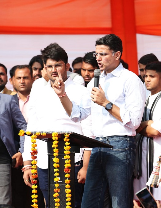 सचिन पायलट ने कहा 2014 में पहली बार राहुल गांधी और सोनिया गांधी ने मुझे प्रदेश अध्यक्ष बनाया था। उस समय हमारे केवल 21 विधायक रह गए थे। पांच साल हमने मिलकर काम किया। पायलट ने फिर युवाओं से पूछा पांच साल कांग्रेस अध्यक्ष रहते हुए मेहनत में कोई कमी देखी, संघर्ष में कोई कमी देखी, रगड़ाई में कोई कमी देखी? युवाओं ने हर बार जवाब दिया कोई कमी नहीं देखी। पायलट ने कहा छात्रों, नौजवानों के भविष्य के साथ जो भी खिलवाड़ करेगा, मैं उसके विरोध में खड़ा मिलूंगा। मैं उसका विरोध करूंगा। न्याय मिलना चाहिए और न्याय मिलते हुए दिखना भी चाहिए। मेरी पार्टी ने मुझे बहुत कम उम्र में मौके दिए। मैं 26 साल की उम्र में संसद में चला गया था। पायलट ने कहा मेरी पार्टी ने मुझे बहुत कम उम्र में मौके दिए। मैं 26 साल की उम्र में सांसद बन गया। मैं जब अध्यक्ष बना, मैंने जितने भी नगरपालिका के चुनाव हुए, पंचायत समिति के चुनाव हुए, उस वक्त मैंने 40% टिकट उन लोगों को दिए, जिनकी उम्र 40 साल से कम थी। मैंने बहुत सारे नौजवानों को विधानसभा तक पहुंचाने का प्रयास किया। कामयाब तो भगवान करवाता है। मौका देना अलग बात होती है। हमें अपने से कम उम्र के नौजवानों को मौका देना पड़ेगा। पायलट ने कहा न्यूजीलैंड की प्रधानमंत्री को सलाम करना चाहता हूं। दुनिया की सबसे कम उम्र की पीएम थीं। 42 साल की उम्र में उन्होंने पद छोड़ने की घोषणा कर दी। जब उन्हें लगा कि पब्लिक रेटिंग में कुछ नंबर कम आ गए तो उन्होंने टेलीविजन पर आकर इस्तीफे की घोषणा कर दी। कहा अब पार्टी के लिए काम करूंगी। हम सबको आने वाली पीढ़ी का सोचना चाहिए। आप सब युवाओं को सोचना चाहिए।
