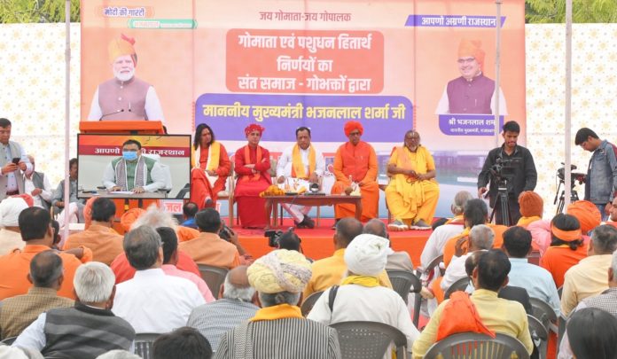 जयपुर। मुख्यमंत्री भजनलाल शर्मा ने कहा कि संत-महात्माओं के आदर्श जीवन से प्रेरणा पाकर हमारी प्रगति का मार्ग प्रशस्त होता है तथा सनातन धर्म, संस्कृति को बढ़ावा देने में संतों की भूमिका बहुत महत्वपूर्ण है। उन्होंने कहा कि सरकार गोवंश के संरक्षण के लिए प्रतिबद्ध है तथा पशुधन के कल्याण हेतु राज्य सरकार विभिन्न योजनाओं का संचालन कर पशुपालकों को लाभान्वित कर रही है। मुख्यमंत्री शर्मा बुधवार को संत समाज-गोभक्तों की आभार सभा को वर्चुअल माध्यम से ओटीएस स्थित मुख्यमंत्री निवास से संबोधित कर रहे थे। कार्यक्रम में आए साधु-संतों ने गोमाता के हितों के लिए किए गए निर्णयों, ईआरसीपी तथा यमुना जल समझौते के लिए मुख्यमंत्री का आभार व्यक्त किया। मुख्यमंत्री शर्मा ने कहा कि राज्य सरकार ने अपने ढाई माह के अल्प कार्यकाल में पानी की समस्या को दूर करने के लिए प्राथमिकता से कार्य किया है। पूर्वी राजस्थान के लिए ईआरसीपी परियोजना तथा शेखावटी क्षेत्र के लिए ताजेवाला हैडवर्क्स के ऐतिहासिक एमओयू के माध्यम से इन क्षेत्रों में पेयजल एवं सिंचाई हेतु पर्याप्त मात्रा में पानी उपलब्ध हो सकेगा। साथ ही, उदयपुर में देवास बांध परियोजना तृतीय एवं चतुर्थ के माध्यम से दक्षिण राजस्थान में भी जल की आपूर्ति सुनिश्चित की जा रही है। उन्होंने कहा कि ये सभी परियोजनाएं कई वर्षों से लंबित थी। प्रधानमंत्री नरेन्द्र मोदी की पहल तथा साधु-संतों के आशीर्वाद से अब इनका क्रियान्वयन संभव हो पाया है। शर्मा ने कहा कि राज्य सरकार द्वारा गोवंश संरक्षण के लिए गोपाल क्रेडिट कार्ड योजना प्रारंभ की गई है जिसके तहत पशुपालकों को 01 लाख रुपये तक ब्याज मुक्त ऋण उपलब्ध करवाया जाता है। सरकार द्वारा पशुधन के लिए मोबाइल वेटनरी यूनिट की भी शुरुआत की गई है। इन यूनिट्स के माध्यम से पशुओं को समय पर चिकित्सकीय सेवाएं उपलब्ध हो सकेंगी। उन्होंने कहा कि अयोध्या में रामलला की प्राण प्रतिष्ठा के बाद राज्य सरकार द्वारा बस, ट्रेन तथा हवाई जहाज के माध्यम से दर्शनार्थियों के लिए परिवहन की सुविधा भी उपलब्ध करवायी जा रही है। कार्यक्रम में बुधगिरी मढ़ी (फतेहपुर शेखावाटी) के पीठाधीश्वर एवं गोसेवा समिति के अध्यक्ष श्री दिनेश गिरी महाराज ने राज्य सरकार का धन्यवाद देते हुए कहा कि सनातन धर्म संस्कृति तथा गोसेवा संरक्षण के लिए राज्य सरकार अग्रणी भूमिका निभा रही है। उन्होंने कहा कि मुख्यमंत्री भजनलाल शर्मा की दूरदर्शी सोच तथा उनके नेतृत्व के कारण यह संभव हो सका है। इस अवसर पर संत-महात्माओं का श्रीफल तथा शॉल ओढ़ाकर सम्मान किया गया। समारोह में गोपालन मंत्री जोराराम कुमावत, सांसद सीपी जोशी, सुमेधानंद सरस्वती, विधायक बालमुकुन्दाचार्य, रेवासा धाम प