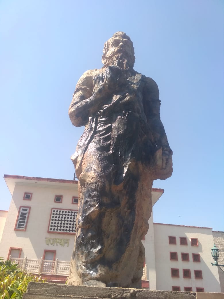 जयपुर। राजस्थान हाईकोर्ट में सोमवार को कोर्ट परिसर में स्थापित मनु महाराज की प्रतिमा पर काला रंग पोत दियाष दो महिलाओं ने प्रतिमा पर स्प्रे से काला रंग डाला । यह देख वकीलों ने दोनों महिलाओं को पकड़ा और रजिस्ट्रार के सुपुर्द कर दिया। रजिस्ट्रार की रिपोर्ट पर महिलाओं को अरेस्ट कर लिया है। यह दोनों महाराष्ट्र की है। इसके पीछे किसी स्थानीय के भी मिले होने का अंदेशा है। प्रतिमा पर काला रंग डालने का पता चलने पर वकील जमा हो गए। महिलाओं से मारपीट की भी सूचना है।