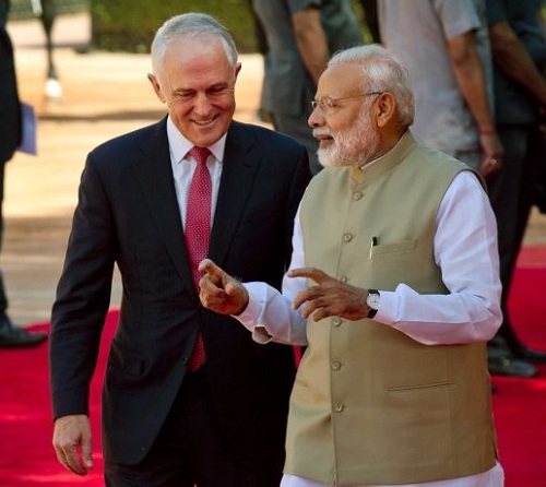 नई दिल्ली। अपनी चार दिवसीय यात्रा पर पहली बार भारत पर आए आस्ट्रेलियाई पीएम मैल्कम टर्नबुल ने भारत के पीएम नरेन्द्र मोदी की तारीफों के पुल बांध दिए। टर्नबुल ने कहा कि मोदी के नेतृत्व में भारत विकास के असाधारण रास्ते पर जा रहा है। भारत ने जो उल्लेखनीय उपलब्धियां हासिल की है वे पूरे विश्व जगत के लिए प्रेरणादायी है। यही वजह है कि हम भी भारत के बेदह करीब आकर साथ काम करने का प्रयास करेंगे। हम इतिहास और मूल्यों के द्वारा एक दूसरे के साथ बेहद करीबी से जुड़े हैं। आज आस्टे्रलिया में भारतीय मूल के लोगों की संख्या 5 लाख है। हमारे रिश्ते और मजबूत हो, इसके लिए दोनों मिलकर काम करेंगे। इससे पूर्व आस्ट्रेलियाई पीएम मैल्कम टर्नबुल अपने भारत दौरे के तहत नई दिल्ली पहुंचें। जहां उनका राष्ट्रपति भवन में भव्य स्वागत किया गया। बाद में उन्होंने पीएम मोदी के साथ मुलाकात की। टर्नबुल इस यात्रा के दौरान पीएम मोदी के साथ बायो फ्यूल, क्लीन कोल, सुरक्षा, पर्यावरण, खेल, विज्ञान, तकनीक और स्वास्थ्य सहित अनेक मुद्दों से जुड़े समझौतों पर हस्ताक्षर करेंगे। पीएम मोदी से टर्नबुल इससे पहले भी जी 20 सम्मेलन में मिल चुके हैं। जबकि होंगझु में भी दोनों के बीच मुलाकात हुई। अपनी यात्रा के तहत टर्नबुल मुम्बई भी जाएंगे।