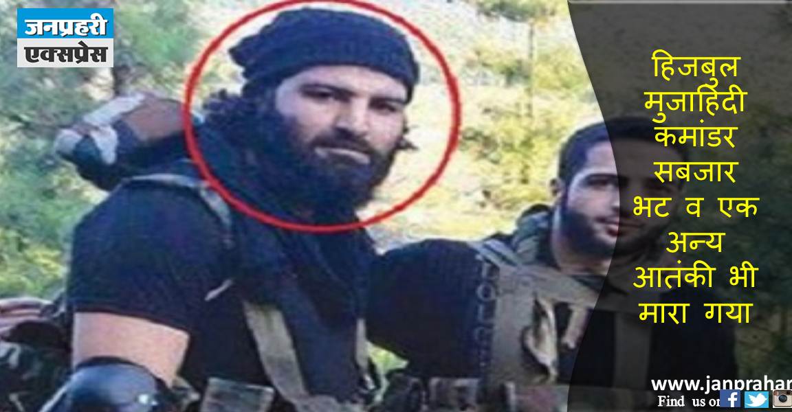 नई दिल्ली। भारतीय सेना को बीते दो दिनों में आतंकियों के खिलाफ की जारी कार्यवाही में बड़ी कामयाबी मिली है। एक ओर तो सुरक्षाबलों ने दो दिनों में जबरदस्त कार्यवाही करते हुए कुल 8 आतंकियों को मार गिराया। वहीं दूसरा एक बड़ी सफलता हासिल करते हुए हिजबुल मुजाहिदी के कमांडर आतंकी सबजार भट को मुठभेड़ में मार गिराया। सबजार ने आतंकी बुरहान वानी के मारे जाने के बाद हिजबुल की कमान संभाली थी। सबजार के साथ एक आतंकी ओर मारा गया। ये दोनों ही आतंकी पुलवामा के त्राल सेक्टर स्थित एक मकान में छिपे हुए थे। इन दोनों के अतिरिक्त सुरक्षाबलों ने बारामूला के रामपुर सेक्टर में लाइन ऑफ कंट्र्रोल के सहारे घुसपैठ करने की फिराक में बैठे 6 आतंकियों को मार गिराया। इससे पहले सेना ने शुक्रवार को कश्मीर के उरी में ही नियंत्रण रेखा के पर पाकिस्तान बॉर्डर एक्शन टीम के दो हमलावर आतंकियों को ढेर किया था। ये दोनों ही हमलावर एलओसी से 700 मीटर अंदर आ गए थे। जब सेना ने जवाबी कार्यवाही की तो ये वापस पाक पोस्ट की ओर भागने लगे। जहां सेना ने एलओसी से महज 200 मीटर के दायरे में ही उन्हें ढेर कर दिया। सेना ने इनके पास से बड़ी मात्रा में हथियार व गोला बारुद भी बरामद किया है।