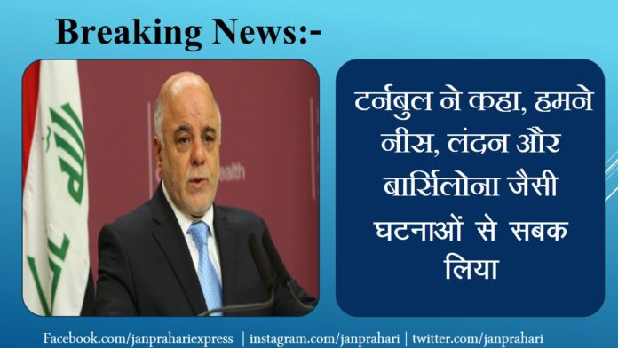 बगदाद। इराक के प्रधानमंत्री हैदर अल-अबादी ने रविवार को आतंकी संगठन इस्लामिक स्टेट (आईएस) के कब्जे से तल अफार शहर को वापस लेने के लिए इराकी सेना को अभियान शुरू करने का आदेश दिया। समाचार एजेंसी एफे न्यूज के अनुसार, टीवी पर राष्ट्र को संबोधित करते हुए अबादी ने कहा कि तल अफार की मुक्ति का अभियान शुरू हो गया है। वह यह घोषणा करते वक्त इराक के झंडे के सामने सेना की वर्दी पहने हुए थे। आतंकवादियों को चेतावनी देते हुए प्रधानमंत्री ने कहा, आतंकियों के पास अब कोई विकल्प नहीं है, या तो वह आत्मसमर्पण करें या फिर मरने के लिए तैयार हो जाएं। बीबीसी की रिपोर्ट के मुताबिक, उन्होंने अपना भाषण इराकी सेना के नाम एक संदेश देकर खत्म किया : पूरी दुनिया आपके साथ है। अबादी के बयान से पहले, इराकी वायुसेना ने शहर के ऊपर से पर्चे गिरा कर वहां के लोगों को हमले की स्थिति में तैयार रहने की चेतावनी दी। पर्चे में लिखा हुआ था, “जंग तय है और हमारी जीत करीब है, इंशाअल्लाह। तल अफार शहर को इराकी सेना ने घेर रखा है। शहर के दक्षिण हिस्से में सेना के साथ शिया मिलिशिया है और उत्तर में कुर्द पेशमर्गा लड़ाके तैनात हैं। तल अफार शहर को 2014 में आईएस ने अपने कब्जे में कर लिया था। इस शहर की ज्यादातर जनसंख्या शिया मुस्लिमों की है। यह शहर मोसुल और सीरियाई सीमा के बीच की एक सड़क पर मौजूद है जो कभी जिहादी समूह के लिए आपूर्ति मार्ग के रूप में कार्य करती थी।