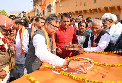 जयपुर. कांग्रेस की भारत जोड़ो यात्रा के राजस्थान में प्रवेश करने के साथ ही भाजपा का जनाक्रोश अभियान शुरू हो गया है। दिसंबर 2018 में सरकार के गठन के बाद इसी माह सरकार के चार साल पूरे हो रहे हैं। इसके विरोध स्वरूप रविवार से राज्य के सभी जिलों में जनाक्रोश रथयात्राएं शुरू हुईं। सीकर में कुछ क्षेत्रों को छोड़कर सभी सीटों पर पार्टी के वरिष्ठ नेताओं, सांसद, विधायक एवं कार्यकर्ताओं ने जनाक्रोश रथ यात्रा को रवाना किया। रथ के साथ ही कार्यकर्ता भी चलते रहे। यात्राएं 13 दिसंबर तक सभी विधानसभा क्षेत्रों में चलेंगी। इन यात्राओं में सरकार के खिलाफ आरोप पत्र की प्रतियां जनता को बांटी जा रही हैं, जिसमें वादाखिलाफी, कानून व्यवस्था आदि बिंदुओं को शामिल किया गया है। इसके अलावा शिकायत पत्र फॉर्म भी जनता से भरवाए जा रहे हैं, जो प्रत्येक रथ में लगी शिकायत पेटिका में एकत्र किए जा रहे हैं। साथ ही केंद्र की योजनाओं के पत्रक वितरित किए जा रहे हैं। भाजपा प्रदेशाध्यक्ष सतीश पूनिया ने जयपुर में झोटवाड़ा विधानसभा क्षेत्र में झाडखंड महादेव मंदिर से और आमेर में शिला माता मंदिर से रथों का पूजन कर जन आक्रोश यात्राओं को रवाना किया। पूनिया ने आमेर में शिला माताजी मंदिर से यात्रा का शुभारंभ रथ का पूजन कर किया। इस दौरान वे मंदिर परिसर से कुंडा तक करीब 5 किलोमीटर कार्यकर्ताओं के साथ पैदल चलकर यात्रा में शामिल हुए। इसी तरह मालवीय नगर विधानसभा क्षेत्र के लिए मोती डूंगरी गणेश मंदिर से रथ को भेजा गया। यहां बड़ी संख्या में कार्यकर्ता पहुंचे और लोगों को सरकार के वादाखिलाफी के प्रकाशित पर्चे बांटे। सांगानेर विधानसभा क्षेत्र के भी कार्यकर्ताओं की भीड़ उमड़ी और उनके साथ रथ को क्षेत्र में घुमाया गया। आदर्श नगर, सिविल लाइन्स, झोटवाड़ा, विद्याधर नगर, बगरू, हवामहल विधानसभा क्षेत्र में भी कार्यक्रम हुए। उधर, किशनपोल विधानसभा क्षेत्र में कार्यकर्ताओं की संख्या अपेक्षा से काफी कम रही। पूनिया ने आरोप जड़ा कि राजस्थान में जंगलराज है। कानून व्यवस्था बदहाल है, निर्दोष लोग मारे जा रहे हैं, एक बेटी के सामने उसके पिता की गोली मारकर हत्या कर दी जाती है। राज्य सरकार हाथ पर हाथ धरे बैठे रहती है। झोटवाड़ा और आमेर की जन आक्रोश यात्राओं में सतीश पूनिया के साथ पूर्व मंत्री राजपाल सिंह शेखावत, जिला अध्यक्ष जितेन्द्र शर्मा, प्रधान बद्रीनारायण बागड़ा, हरदेव यादव, प्रदेश मंत्री श्रवण सिंह बगड़ी, जिला महामंत्री कृष्ण मोहन, प्रदेश पैनलिस्ट राखी राठौड़, मंडल अध्यक्ष दौलत सिंह शेखावत, मंडल अध्यक्ष महेंद्र यादव, ओबीसी मोचाज़् जिला अध्यक्ष चेतन कुमावत, झोटवाडा यात्रा प्रभारी अविनाश जोशी इत्यादि सहित कार्यकर्ता व आमजन उपस्थित रहे।