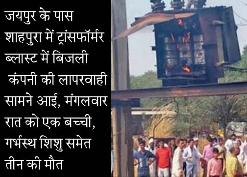 जयपुर। राजस्थान के जयपुर के पास शाहपुरा में भात कार्यक्रम के दौरान ट्रांसफॉर्मर में ब्लास्ट मामले में चौदह जनों की मौत हो गई है। मंगलवार को हादसे के दौरान कुछ देर में ही ग्यारह लोगों की मौत हो गई थी। मंगलवार रात को तीन जने ओर मर गए। करीब आधा दर्जन गंभीर घायल जिन्दगी और मौत के बीच संघर्ष कर रहे हैं। इस ह्रदय विदारक हादसे से जयपुर विद्युत वितरण निगम की लापरवाह कार्यशैली सामने आई है। जिस ट्रांसफॉर्मर में ब्लास्ट हुआ है, वह पांच दिन पहले लगा था। ऐसे में नए ट्रांसफार्मर में ब्लास्ट और फटने से इतना बड़ा हादसा हो गया। बताया जाता है कि ग्यारह केबी लाइन से जुड़े ट्रांसफार्मर में प्रोटेक्शन सिस्टम नहीं था, जिसके चलते हाई वोल्टेज आने पर फ्यूज नहीं उड़ा और ना ही लाइन ट्रिप हो पाई, जिसके चलते ट्रांसफार्मर में ब्लास्ट हो गया और गरम डीजल आग के गोले की तरह वहां मौजूद लोगों पर गिर पड़ा। लोहे के टुकड़े भी उनके शरीर को छलनी कर गए। देखते ही देखते ट्रांसफार्मर चौदह जनों की जान ले गया। इस घटना के बाद ग्रामीणों में रोष है। सरकार ने भी मुआवजा दिया है। सीएम वसुंधरा राजे, केन्द्रीय मंत्री राज्यवर्धन सिंह राठौड़ व दूसरे मंत्री व विधायक प्रभावित गांव में परिजनों और घायलों से मिले। पीसीसी चीफ सचिन पायलट और नेता प्रतिपक्ष रामेश्वर डूडी भी एसएमएस में घायल लोगों के परिजनों से मिले। इस घटना के बाद ग्रामीणों बिजली कंपनी के प्रति खासा गुस्सा है। इस हादसे के पीछे कंपनी को जिम्मेदार ठहरा रहे हैं। सरकार ने भी मामले की जांच के आदेश दिए हैं। संभागीय आयुक्त राजेश्वर सिंह को जांच सौंपी गई है। जयपुर विद्युत वितरण निगम के एमडी आरजी गुप्ता ने मामले की जांच की कही है। हालांकि वे निगम को दोषी बताने से बच रहे हैं। ब्लास्ट ट्रांसफार्मर की जांच एमएनआईटी से करवाने के आदेश दिए हैं।