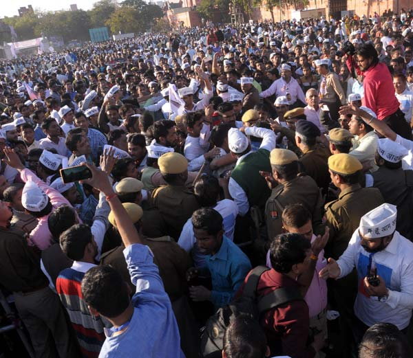 ने की मांग भी की। केजरीवाल ने लोकसभा चुनाव से पहले गुजरात मुख्यमंत्री रहते हुए नरेन्द्र मोदी द्वारा सहारा और बिडला समूह से पैसा लेने के अपने आरोप लगाए। केजरीवाल ने प्रधानमंत्री पर निजी आरोप लगाते हुए कहा कि प्रधानमंत्री के बिडला और सहारा समूह से पैसा लेने के दस्तावेजी सबूत उनके पास है और ऐसा ही पैसा उन्होनें विजय माल्या को भारत से भगाने में भी लिया होगा। उन्होंने कहा कि नाटक करने के लिए प्रधानमंत्ररी ने अपनी 90 साल की मां को कतार में खडा कर दिया। वे देश की जनता से त्याग करने कोकहते हैं और खुद दिन में छह बार कपडे बदलते हैं और जहाजों में घूमते है। हमारी बेटियों की शादी ढाई लाख में करने को कहते हैं और उनके दोस्तों की शादियां 500 करोड में होती है। केजरीवाल ने यह भी कहा कि काले कुत्ते को वोट देना, लेकिन भाजपा को वोट मत देना। नोटबंदी से देश का आर्थिक भट्टा बैठ गया है। बैंकों की लाइनों में लगकर आम आदमी हैरान-परेशान हो रहा है। कारोबारी और पैसे वाले बैकडोर से बैंकों में अपनी करंगी व कालाधन बदलवा रहे हैं। दो हजार का नोट चला कर सरकार ने भ्रष्टाचार और काला धन रखने वालों को ज्यादा फायदा करा दिया है। लोग भी समझ रहे हैं कि नोटबंदी के बहाने उनके साथ धोखा किया गया है। राजस्थान में मुख्यमंत्री अरविंद केजरीवाल की यह पहली जनसभा थी, जिसमें हजारों कार्यकर्ताओं ने शिरकत की। जिस तरह से लोग उमड़े, उस हिसाब से यह जनसभा काफी सफल रही। सभा में दिल्ली के पर्यटन मंत्री कपिल मिश्रा ने सभा के बाद जब केजरीवाल वापस लौट रहे थे तो एक युवक ने केजरीवाल को देशद्रोही कह कर उनके खिलाफ नारे लगाए। कार्यकर्ताओं ने इस युवक को घेर लिया। तभी पुलिस इस युवक को छुडवा कर अपने साथ ले गई। सभा में प्रभारी नितिन त्यागी, राजस्थान के आप नेता डॉ. वीरेन्द्र सिंह, डॉ. महावीर सिंह नाथावत, उम्मेद सिंह, कमलेश सक्सैना आदि मौजूद थे।