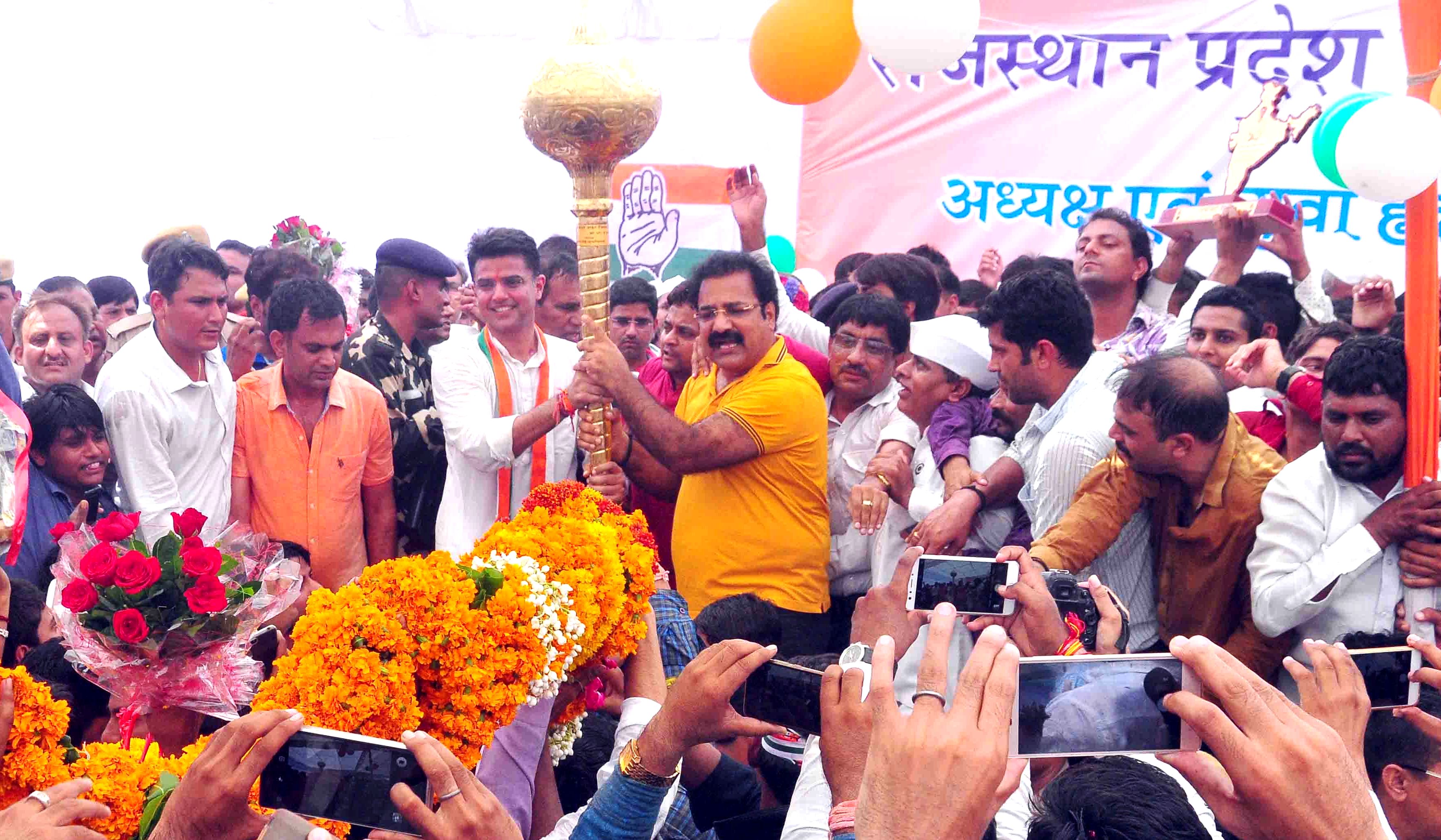 जयपुर । जयपुर शहर जिला कांग्रेस कमेटी के अध्यक्ष प्रतापसिंह खाचरियावास के नेतृत्व में जयपुर के हजारों कांग्रेस कार्यकतार्ओं ने प्रदेषाध्यक्ष सचिन पायलट को जन्मदिन की बधाई देते हुये राजस्थान में सत्ता परिवर्तन करने के लिये जयपुर के कार्यकतार्ओं की ओर से हनुमानजी की गदा भेंट की। हनुमानजी की गदा भेंट करते हुये प्रतापसिंह खाचरियावास ने कहा कि प्रदेष भाजपा सरकार के जुल्म को खत्म करने के लिये पायलट को हनुमानजी की गदा भेंट की गई है जिससे प्रदेश भाजपा सरकार की जनविरोधी नीतियों के विरोध में कांग्रेस पार्टी पायलट के नेतृत्व में बडा संघर्ष करने के लिये तैयार रहे। खाचरियावास ने कहा कि पायलट के नेतृत्व में इन साढ़े तीन वर्षों में प्रदेश कांग्रेस को एक नई ताकत मिली है एवं कार्यकतार्ओं में उत्साह व जोश बना हुआ है। आज पूरे प्रदेश की जनता कांग्रेस पार्टी के साथ खड़ी है। इसमें पायलट ने एक सफल संघर्ष करके कांग्रेस को जबरदस्त मजबूती प्रदान की है। आज प्रदेश कांग्रेस कार्यालय पर हुये प्रदेषाध्यक्ष सचिन पायलट के जन्मदिन समारोह में जिलाध्यक्ष प्रतापसिंह खाचरियावास के साथ जिला पदाधिकारी-मनोज मुदगल, नीतेश पालीवाल, विमल यादव, हरेन्द्रपालसिंह जादौन, सीपी शर्मा, सुधीर पारीक, जगदीश चौैधरी, प्रदीप चैधरी, समीर सुखीजा, हेमलता शर्मा, प्रतिभा पालीवाल, रोहिताश सिंह, सुषील गुर्जर, ललित राणा, मुकेश भाटिया, धर्मवीर गुर्जर, हरिशंकर खाण्डल सहित सैकडों कार्यकर्ता उपस्थित थे।