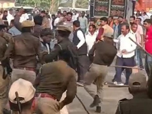 कोटा. किसान कर्ज माफी को लेकर बीजेपी कार्यकर्ता राहुल गांधी को ज्ञापन सौंपने जा रहे थे। पुलिस ने रोका तो पथराव कर दिया। मामला बिगड़ता देख पुलिस ने लाठीचार्ज कर दिया। पूर्व विधायक सहित 14 लोग घायल हुए हैं। कुछ पुलिसकर्मियों को भी चोटें आई हैं। 2 कार्यकर्ताओं को हॉस्पिटल भी ले जाया गया है। पुलिस कार्रवाई के विरोध में कार्यकर्ताओं ने धरना भी दिया। मामला कोटा का है। मंगलवार को पूर्व विधायक हीरालाल नागर ने बताया कि बीजेपी के कार्यकर्ता किसान कर्ज माफी को लेकर ज्ञापन देने कनवास से मोरुकला जा रहे थे। कोटा के आवां दरा चौराहे पर पुलिस ने रोक लिया। थोड़ी देर बाद पुलिस ने लाठियां बरसानी शुरू कर दी। लाठियों के बल पर कार्यकर्ताओं को खदेड़ा। हीरालाल के भी हाथ में चोटें आई हैं। बीजेपी कार्यकर्ता मंगलवार दोपहर करीब 2 बजे कनवास पेट्रोल पंप पर इकट्ठे हुए थे। यहां से सभी कार्यकर्ता राहुल गांधी को ज्ञापन देने के लिए रवाना हुए। करीब 100 मीटर आगे पुलिस ने उन्हें रोक लिया। यहां पुलिस ने बैरिकेड्स लगा रखे थे। कांग्रेस की झंडी लगी गाड़ियां निकलते देख बीजेपी कार्यकर्ताओं ने आगे जाने की कोशिश की। पुलिस ने फिर उन्हें रोक दिया। इसके विरोध में कार्यकर्ता वहीं धरने पर बैठ गए।