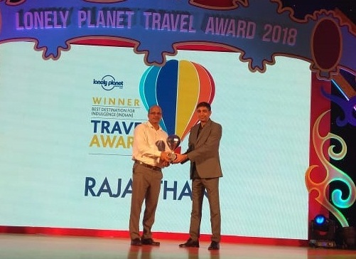 हाल ही मंे यूके की मैगजीन द्वारा करवाए गए पाठक सर्वे में राजस्थान को बेस्ट डेस्टिनेशन फाॅर कल्चर और बेस्ट डेस्टीनेशन फाॅर इण्डलगेंस दो प्रतिष्ठित पुरस्कारों के लिए कल मुम्बई में आयोजित ‘‘लोनली प्लेनेट ट्रैवल अवाॅर्ड्स – 2018‘‘ के समारोह में प्रदान किए गऐ। यह दोनो प्रतिष्ठित पुरस्कार राजस्थान पर्यटन विभाग के ज्वाइट डायरेक्टर, मार्केटिंग, आनन्द त्रिपाठी ने प्राप्त किए।