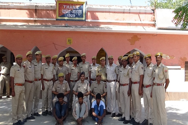 जयपुर। टोंक जिला पुलिस ने खानाबदोश मोग्या जाति द्वारा राजस्थान में किये गये जघन्य हत्याकाण्ड, लूट, नकबजनीकी वारदातों का पदार्फाश कर महत्वपूर्ण सफलता हासिल करते हुए हुए सोमवार को तीन शातिर अपराधियों को गिरफ्तार किया है। जिनसे पूछताछ में कई सनसनीखेज वारदातों का पदार्फाष हुआ है। अतिरिक्त महानिदेशक पुलिस,अपराध पंकज कुमार सिंह ने आज यह जानकारी देते हुए बताया कि टोंक जिले में पिछले दिनों हुई नकबजनी की वारदातों के खुलासे तथा गत वर्ष दूनी क्षेत्र में हुई हत्या सहित डकैती की वारदात में वांछित मुल्जिमों की गिरफ्तारी के लिये महानिरीक्षक पुलिस अजमेर रेन्ज मालिनी अग्रवाल के निर्देष पर पुलिस अधीक्षक प्रीति जैन ने अतिरिक्त पुलिस अधीक्षक टोंक अवनीश कुमार के मार्ग निदेशन व वृताधिकारी वृत मालपुरा डॉ. हरिप्रसाद सोमाणी के नेतृत्व में एक विषेष टीम का गठन किया। सिंह ने बताया कि टीम द्वारा क्षेत्र में रहने वाले चोरी, नकबजनी में चालानशुदा एवं संदिग्ध गतिविधियों वाले व्यक्तियों पर निगरानी के साथ-साथ तकनीकी विशलेषण एवं आसूचना संकलन के आधार पर सघन प्रयास किये जाने के फलस्वरूप 11 सितम्बर,2017 को चोरी व नकबजनी के अन्तर्राज्यीय गिरोह का पर्दाफाश करते हुऐ अभियुक्त रामकिशन मोग्या एवं मोतीलाल मोग्या द्वारा जिला टोंक, जयपुर, बून्दी, भीलवाड़ा, अजमेर में लगभग 40 चोरी नकबजनी की वारदातें करना ज्ञात हुआ। अतिरिक्त महानिदेशक पुलिस ने बताया कि टीम के सदस्य वेष बदलकर गत कुछ दिनों से मालपुरा, घाटी टोरडी व आसपास के क्षेत्रों में संदिग्ध व्यक्तियों एवं उनकी गतिविधियों पर निगरानी कर रहे थे। मुखबीर से ईतला मिलने पर उक्त टीम द्वारा टोरडी के पास जंगल से खाल (नाला) मे छिपे रामस्वरूप उर्फ लूगां पुत्र हरिसिह मोग्या (25) निवासी जरेली थाना मालपुरा जिला टोंक, मुकेष उर्फ कटोरा पुत्र बद्री मोग्या (21) निवासी जनकपुरा थाना मालपुरा जिला टोक एवं राधेश्याम उर्फ बुच्या पुत्र हरिसिह मोग्या (20) निवासी जरेली थाना मालपुरा जिला टोक को गिरफ्तार किया जाकर अनुसंधान जारी है । मुलजिमान के पूर्व के आपराधिक रिकार्ड, मुखबीर एवं अन्य स्रोतों से प्राप्त जानकारी के आधार पर मुलजिमान से गहन पूछताछ एवं अनुसंधान किया गया, जिसमें आरोपीयान ने हत्या सहित लूट, डकैती, चोरी व नकबजनी की वारदाते जिला टोंक, पाली, नागौर, अलवर, जयपुर, सीकर, अजमेर मे करना स्वीकार किया है । आरोपीयों से पूछताछ मे और वारदाते खुलने की सम्भावना है।