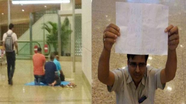 विनीत का आरोप है कि जब उनकी पत्नी ने नमाज अदा कर रहे लोगों की फोटो खींचनी चाही तो जवानों ने रोका और अभद्र व्यवहार भी किया। विनीत का कहना है कि जब वे नमाज अदा कर सकते हैं तो हमें भी पूजा की अनुमति दी जाए। इस दौरान यात्रियों में कहासुनी भी हुई। विनीत का आरोप है कि इस मामले में विवाद के चलते उसने अपनी फ्लाइट छोड़कर वहां धरने पर बैठ गए। इस संबंध में केन्द्रीय गृहमंत्री राजनाथ सिंह को भी पत्र लिखा है। साथ ही एयरपोर्ट परिसर में नमाज अदा करने पर रोक लगाने की मांग की है।
