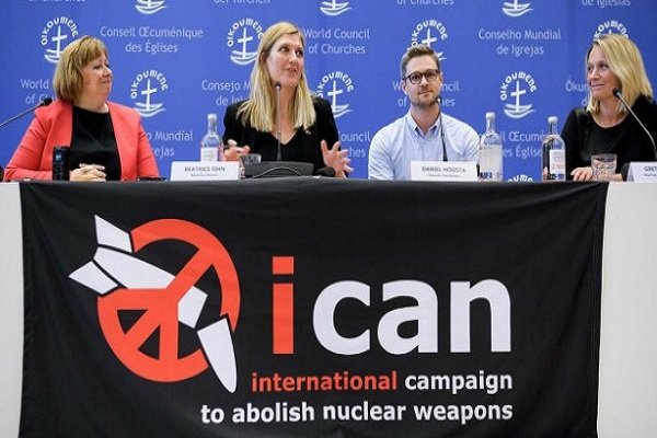 आईसीएएन दुनिया भर के सैकड़ों गैर-सरकारी समूहों (एनजीओ) का गठबंधन है। संगठन परमाणु हथियारों पर रोक के लिए संधि की खातिर काम करता रहा है जिसे जुलाई में 122 देशों ने स्वीकार किया था। लेकिन परमाणु शक्तियों से लैस नौ देशों ने इस पर हस्ताक्षर नहीं किए। फिन ने कहा कि हमारे सिर पर हमेशा तलवार लटकी हुयी है। उन्होंने कहा कि उम्मीद थी कि ये हथियार हमें स्वतंत्र रखेंगे लेकिन उन्होंने हमें अपनी स्वतंत्रता से वंचित कर दिया।