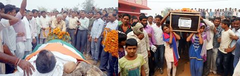 झुंझुनूं। जम्मू कश्मीर के राजौरी क्षेत्र में दुश्मनों से लोहा लेते हुए शहीद हुए झुंझुनूं के वीर सैनिक छेलूराम गुर्जर की शहादत को हर कोई याद करके आसूं बहा रहा है। छेलूराम ने सेना में भर्ती होकर भारत मां की तो सेवा की, वहीं छेलूराम का सपना था कि वह अपनी तीनों बेटियों को खूब पढ़ाए-लिखाए, बल्कि बड़ा अफसर भी बनाएं। समाज की परवाह किए बिना वह पूरी ईमानदारी से इस सपने को साकार करने में लगा रहा। लेकिन जब पिता के शहीद होने की खबर बेटियों और परिजनों को लगी तो उन पर पहाड़ टूट पड़ा। हालांकि सगे-संबंधियों और लोगों ने उन्हें संबल बंधाया। बहादुर पिता की शहादत को याद करते हुए तीनों बेटियों ने ना केबल हिम्मत बांधी, बल्कि अपने पिता की अर्थी को कंधे देते हुए श्मशान तक लेकर गई। आठ वर्षीय पुत्र उत्सव ने पिता को मुखाग्नि दी। शहीद की तीनों बेटियों सरिता, नीतू व मोनिता ने शहीद पिता को कंधा दिया तो सभी के आंखों में पानी भर आया। इस दौरान सेना की टुकड़ी ने गार्ड ऑफ ओनर देकर शहीद को सलामी दी।