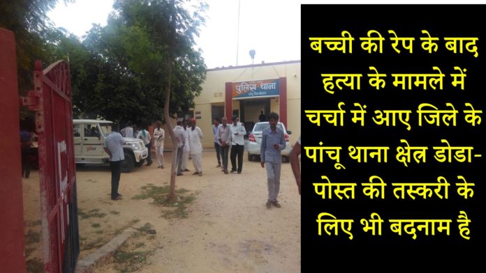 बीकानेर। तेरह साल की एक बच्ची की रेप के बाद हत्या के मामले में चर्चा में आए जिले के पांचू थाना क्षेत्र डोडा-पोस्त की तस्करी के लिए बदनाम है। इस क्षेत्र में गैर कानूनी तरीके डोडा पोस्त की खेती होती है। बहुत से लोग इसकी तस्करी में भी लिप्त है। पांचू उप तहसील है और यह जोधपुर और नागौर जिले की सीमा से सटा हुआ है। डोडा-पोस्ट तस्करी के चलते यहां अपराध भी काफी है और कई गैंग भी सक्रिय है, जो इसमें लिप्त है। इस धंधे में लिप्त अपराधियों और अपराधों के चलते लोगों में भय रहता है। पांचू थाने के कुछ पुलिसवाले भी ऐसे अपराधियों से कथित तौर पर सांठगांठ है। अपराधियों के इशारे पर दूसरे अपराध भी यहां पनप रहे हैं। शराब तस्करी, मिलावटी घीहाल ही एक नाबालिग बच्ची से रेप और उसकी जघन्य हत्या इसका उदाहरण है।