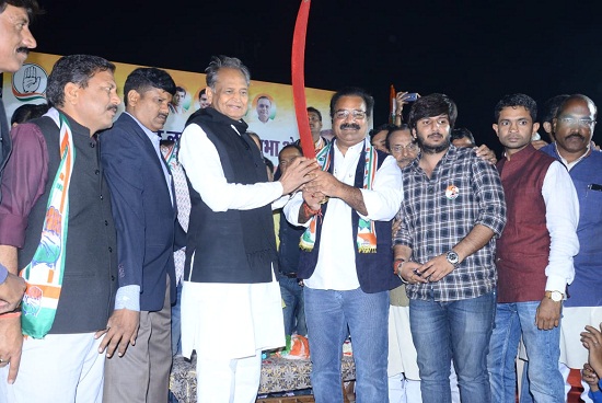 गहलोत ने लोगों से कहा कि भाजपा की मुख्यमंत्री और मंत्री झूठ बोलकरए अफवाह फैलाकर वोट लेना चाहते हैंए लेकिन अब जयपुर और प्रदेष की जनता ने भाजपा को विदा करने का मन बना लिया है। जयपुर कांग्रेस के अध्यक्ष और सिविल लाईन्स प्रत्याषी प्रतापसिंह खाचरियावास ने हजारों नागरिकों को सम्बोधित करते हुये कहा कि जब भी लोग सरकार के जुल्म से परेषान हुये मुझे जिस किसी ने भी पुकारा तब मैं जनता के हितों के लिये रात.दिन सडकों पर लडा हूं। आज मुझे लोगों का आषीर्वाद मिल रहा हैए मैं लोगों से अपील करूंगा कि प्रदेष व जयपुर में भाजपा सरकार के जुल्म को खत्म करने के लिये कांग्रेस पार्टी को जीतायें क्योंकि प्रदेष का 45 लाख मजदूर और उनका परिवार बजरी बंद होने से रोजी.रोटी को तरस रहा है। कर्मचारीए व्यापारीए मजदूरए किसान और विद्यार्थी दुखी हैए चारों तरफ भ्रष्टाचार का बोलबाला है। आओ मिलकर भाजपा को हरायें और कांग्रेस की सरकार बनाकर एक नये राजस्थान का निर्माण करेंए जिसमें सबका सम्मान होए सबका काम हो।