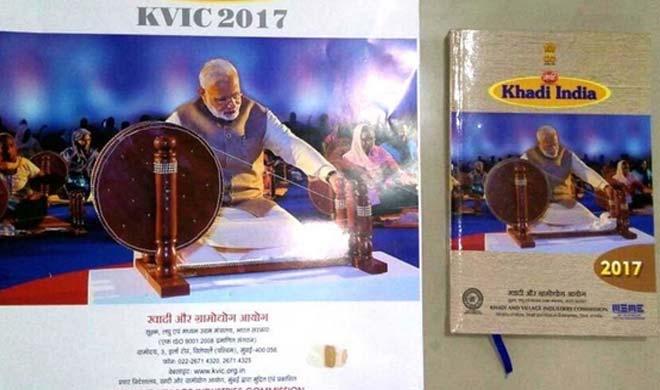 नई दिल्ली। खादी विलेज इंडस्ट्रीज कमीशन की डायरी और कैलेंडर में महात्मा गांधी के बजाय प्रधानमंत्री नरेन्द्र मोदी की तस्वीर लगाने का मामला सियासी जंग में तब्दील हो गया है। महात्मा गांधी के पोते तुषार गांधी ने इस मुद्दे पर अपनी नाराजगी जाहिर करते हुए कह चुके हैं कि बापू को अब खादी कमीशन से राम-राम कह देना चाहिए। उधर, कांग्रेस ने भी इस मुददे पर सरकार को आडे हाथ लेते हुए प्रधानमंत्री मोदी से माफी मांगने की बात कही है। कांग्रेस प्रवक्ता रणदीप सिंह सुरजेवाला ने कहा कि पीएम मोदी को सिर्फ अपनी पब्लिकसिटी से मतलब है। मोदी खुद को राष्ट्रपिता से बड़ा दिखाना चाहते हैं। सूट-बूट की मोदी सरकार ऐसा नहीं कर पाएंगे। भाजपा गांधीजी की विरासत को देश के जेहन से मिटाना चाहती है। गांधीजी की तस्वीर हटाना बड़ा गुनाह है। इसके लिए दोषी अधिकारियों को बर्खास्त करना चाहिए। प्रधानमंत्री की तस्वीर हटाकर गांधीजी की लगानी चाहिए। उधर, खादी कमीशन के अध्यक्ष विनय सक्सेना ने सफाई दी कि कमीशन की डायरी व कलेण्डर पहले भी गांधीजी की तस्वीर के बिना छपते रहे हैं। गांधीजी की तस्वीर छापने का कोई नियम नहीं है। पीएम मोदी की तस्वीर का इस्तेमाल खादी को बढ़ावा देने के लिए किया है।