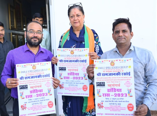 जयपुर. नवरात्रि में मां दुर्गा की आराधना स्वरूप मनाए जाने वाले गरबा की कड़ी में स्माइल स्प्रेडर्स ग्रुप, पिंक कॉन्सेप्ट्स और बीट्स इवेंट्स की ओर से 21 अक्टूबर को वैशाली नगर वेस्ट स्थित कनक पैलेस में डांडिया रास आयोजित किया जाएगा। डांडिया रास 2023 के पोस्टर का विमोचन पूर्व मुख्यमंत्री वसुंधरा राजे ने किया। इस अवसर पर ग्रुप के मैनेजिंग ट्रस्टी रवि शर्मा और बीट्स इवेंट्स के डायरेक्टर कपिल शर्मा मौजूद रहे। स्माइल स्प्रेडर्स ग्रुप के अध्यक्ष विनीश शर्मा और पिंक कॉन्सेप्ट्स के डायरेक्टर अमन वर्मा ने बताया कि 21 अक्टूबर 2023 को होने वाले डांडिया रास कार्यक्रम में आगंतुकों को गुजराती और राजस्थानी संस्कृति का संगम देखने को मिलेगा। महिलाओं के समूह द्वारा हाथों में दीप लिए गरबा करते हुए मां दुर्गा की आराधना होगी। वहीं देर रात तक गुजराती, राजस्थानी, मिक्स बॉलीवुड म्यूजिक की लाइव डीजे बीट्स पर युवक-युवतियां डांडिया खनकाएंगे। युवा संस्कृति, राजस्थान युवा छात्र संस्था के विशेष आग्रह पर यह कार्यक्रम एसएमएस अस्पताल के मंदिर श्रीरामचन्द्रजी में संचालित श्री राम जानकी रसोई में सहयोग के लिए आयोजित किया जा रहा है।