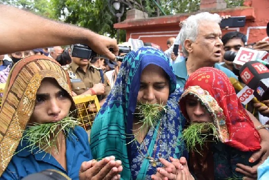 जयपुर। अपने हक के लिए धरने पर बैठी वीरांगनाओं ने सीएम आवास की तरफ कूच किया। मुंह में घास लगाकर नतमस्तक होकर न्याय की गुहार भी लगाई। मगर पुलिस ने उन्हें आगे नहीं बढ़ने दिया। इस दौरान एक वीरांगना की तबियत भी खराब हो गई। मगर उसने ने एम्बुलेंस से अस्पताल जाने से मना कर दिया। उधर किरोड़ी ने चेतावनी दी कि मुख्यमंत्री निरंकुश ना बनें। अगर वीरांगनाओं के हक के लिए 11 साल भी धरने पर बैठना पड़ा तो बैठूंगा। यह धरना 10 दिन से चल रहा है। पिछले तीन दिन से किरोड़ी व वीरांगनाएं पूर्व उप मुख्यमंत्री सचिन पायलट के आवास के बाहर धरना दे रही हैं। मगर उनकी कोई सुनवाई नहीं हुई। सरकार से कई मंत्री, पुलिस अधिकारी वार्ता के लिए आ चुके हैं, लेकिन लिखित में कोई आश्वासन देने को तैयार नहीं है। उधर सीएम ने साफ तौर पर मना कर दिया कि शहीदों के बच्चों का हक किसी दूसरे को नहीं दिया जाएगा। सीएम के इस बयान के बाद से ही वीरांगनाओं में नाराजगी है। इसे लेकर ही उन्होंने दोपहर में सीएम आवास की तरफ कूच किया, मगर पुलिस ने बेरिकेड्स लगाकर रोक दिया। उन्होंने कहा कि हम अपनी मांग को लेकर मुख्यमंत्री से मिलना चाहती हैं, मगर उन्हें मिलने नहीं दिया जा रहा है। राजभवन चौराहे पर जैसे ही वीरांगनाओं को पुलिस ने रोका तो उन्होंने मुंह में घास रखकर दंड़वत निवेदन किया कि उन्हें मुख्यमंत्री से मिलने दिया जाए। मगर पुलिस ने उनकी एक नहीं सुनी। बताया जा रहा है कि आदिवासी समाज में परंपरा है कि किसी भी फरियाद या विनती के लिए मुंह में हरीघास लेकर जाने वो पूरी होती है। वीरांगनाओं ने कहा कि गूंगी-बहरी सरकार को हमारी मांगें सुनाई नहीं दे रही हैं। हम सीएम आवास पर जा रहे थे, लेकिन पुलिस ने हमें रोक लिया। हमारी यही मांग है कि देवर को नौकरी दी जाए और शहीद की मूर्ति लगाई जाए। किरोड़ी लाल मीणा ने कहा कि दुर्भाग्य है कि वीरांगनाओं अपनी चुनी हुई सरकार के नेता से मिलने नहीं दिया जा रहा है। गूंगी बहरी सरकार को वीरांगनाओं के आंसू भी दिखाई नहीं दे रहे हैं। जब तक सरकार इनकी मांगों को पूरा नहीं करती। धरना जारी रहेगा।