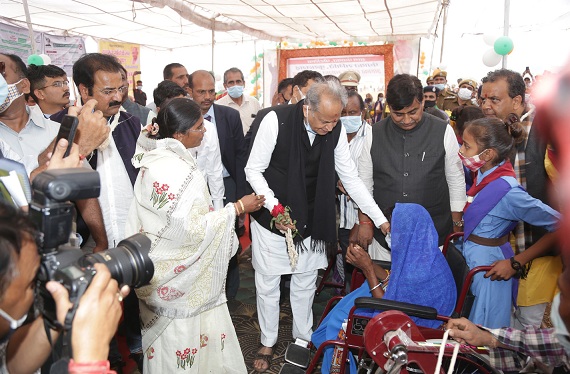 गहलोत शुक्रवार को बांसवाड़ा जिले की कुशलगढ़ पंचायत समिति के पोटलिया ग्राम पंचायत मुख्यालय पर प्रशासन गांवों के संग अभियान शिविर में उपस्थित ग्रामीणों को संबोधित कर रहे थे। उन्होंने शिविर में सभी 22 विभागों द्वारा स्थापित काउन्टरों पर संचालित गतिविधियों का निरीक्षण किया और वहाँ किए जा रहे कार्यों की जानकारी ली। उन्होंने अच्छे कार्यों के लिए संबंधित अधिकारियों की पीठ भी थपथपायी।