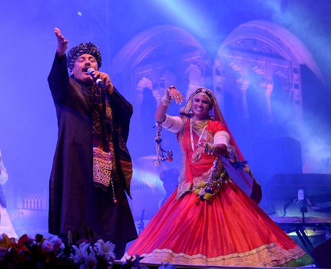 जयपुर। मुख्यमंत्री वसुन्धरा राजे ने राजस्थान दिवस समारोह के तहत अल्बर्ट हाॅल म्यूजियम पर आयोजित सांस्कृतिक संध्या में शिरकत की। उनके साथ राजस्थान दिवस समारोह की मुख्य अतिथि भूटान की राजमाता आशी दोरजी वाग्मो वांगचुक भी मौजूद रहीं। सांस्कृतिक संध्या की शुरूआत छुग्गे खान के राजस्थान जोश बैण्ड द्वारा दी गई प्रस्तुतियों से हुई। छुग्गे खान ने केसरिया बालम आओ नी….तथा अन्य लोक गीतों की प्रस्तुति दी। इसके बाद अन्तर्राष्ट्रीय फैशन डिजाइनर बीबी रसेल द्वारा ‘हैण्डमेड इन राजस्थान अ ट्रिब्यूट टू बाड़मेर’ फैशन शो के माध्यम से बाड़मेर की महिलाओं द्वारा तैयार किए गए खादी परिधानों को प्रस्तुत किया गया। म्यूजिक कन्सर्ट में गायक मोहित चैहान ने अपने प्रसिद्ध गीतों की प्रस्तुति दी।