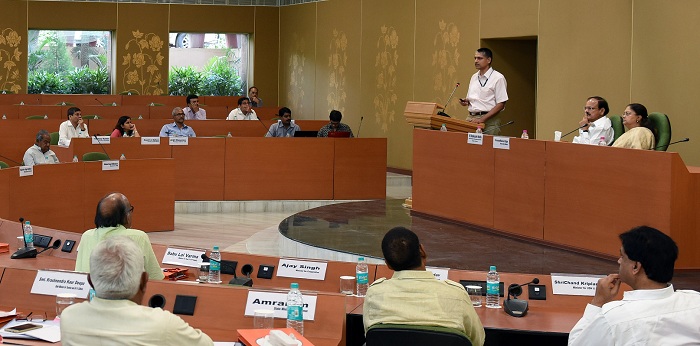मुख्यमंत्री वसुन्धरा राजे ने केन्द्रीय मंत्री को बताया कि मुख्यमंत्री जल स्वावलम्बन अभियान, भामाशाह कार्ड, भामाशाह स्वास्थ्य बीमा योजना, न्याय आपके द्वार एवं पट्टा वितरण अभियान जैसे कार्यक्रमों के माध्यम से प्रदेश विकास के पथ पर अग्रसर है। मुख्यमंत्री जल स्वावलम्बन अभियान को आमजन का अभियान बनाया गया है, जिसके माध्यम से करीब 21 हजार गांवों को पानी के मामले में आत्मनिर्भर बनाने का लक्ष्य है। अभियान के पहले चरण में 3 हजार 529 गांवों में 96 हजार जल संग्रहण ढांचे बनाये गये थे। उन्होंने कहा कि 9 दिसम्बर, 2016 से अभियान का दूसरा चरण शुरू हुआ है, जिसमें 4213 गावों में 1.38 लाख जल संरक्षण कार्य किये जायेंगे। बैठक में शाॅर्ट फिल्म ‘‘राजस्थान हर चेहरे पर ला रहा है मुस्कान’’ के माध्यम से राज्य सरकार की फ्लेगशिप योजनाओं एवं उपलब्धियों को प्रभावी तरीके से दिखाया गया। प्रस्तुतीकरण में प्रदेश में राष्ट्रीय राजमार्ग, स्टेट हाईवे एवं ग्रामीण गौरव पथ की प्रगति, सौर ऊर्जा के क्षेत्र में बढ़ती आत्मनिर्भरता, भामाशाह स्वास्थ्य बीमा योजना के माध्यम से गरीबों तक गुणवत्तापूर्ण चिकित्सा एवं स्वास्थ्य सेवाआंे की पहुंच के बारे में भी बताया गया।