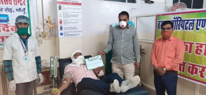 इस रक्तदान से बढ़कर कोई महादान नहीं हो सकता हैं। इस मौके पर चौमूं जर्नलिस्ट् एसोसिएशन ऑफ राजस्थान जार के अध्यक्ष मनोज सैनी ने पूरे देश में कोरोना महामारी के चलते हुए चिकित्सक, पुलिसकर्मी, प्रशासनिक अधिकारी और मीडिया के साथी कोरोना योद्धा बनकर काम कर रहे हैं। और पत्रकार साथियों ने जरूरतमंद लोगों की मदद के लिए रक्तदान किया है। इस संकट की घड़ी में अन्य युवाओं को भी स्वैच्छिक रक्तदान शिविर में भाग लेना चाहिए और जरूरतमंद लोगों की मदद के लिए रक्तदान करना चाहिए यह रक्त की एक बूंद किसी की जिंदगी बचा सकती है। इस मौके पर जर्नलिस्ट एसोसिएशन ऑफ जार राजस्थान चौमूं के महासचिव रामलाल चौधरी ने भी रक्तदान किया। और कहां की यह रक्त की एक बूंद किसी की जिंदगी के लिए काम आ सकती हैं इसलिए आज पत्रकार साथियों ने बराला हॉस्पिटल के ब्लड बैंक पहुंचकर जरूरतमंद की मदद के लिए रक्तदान किया। इस मौके पर जर्नलिस्ट् एसोसिएशन के उपाध्यक्ष नवरतन शर्मा ,पत्रकार कैलाश पाराशर, पत्रकार डीके कुमावत सहित अन्य लोग मौजूद रहे।